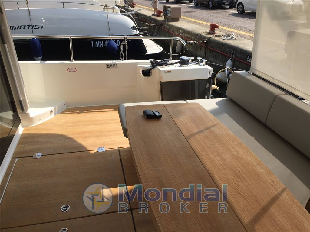 Sotto coperta, il layout armatoriale offre tre ampie cabine e tre bagni eleganti. La dinette sorprende per gli spazi generosi e la luminosità, con zona pranzo conviviale e cucina attrezzata fronte pozzetto, perfetta per vivere la barca in ogni stagione.