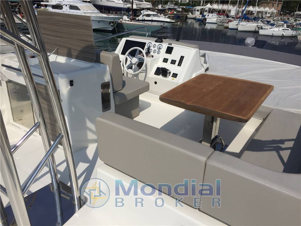 All’esterno spiccano il grande flybridge panoramico, ideale per vivere il mare in totale relax, e la generosa zona di prua, attrezzata con comoda cuscineria prendisole. A poppa troviamo un ampio pozzetto e una plancetta bagno che garantiscono un contatto diretto con il mare.