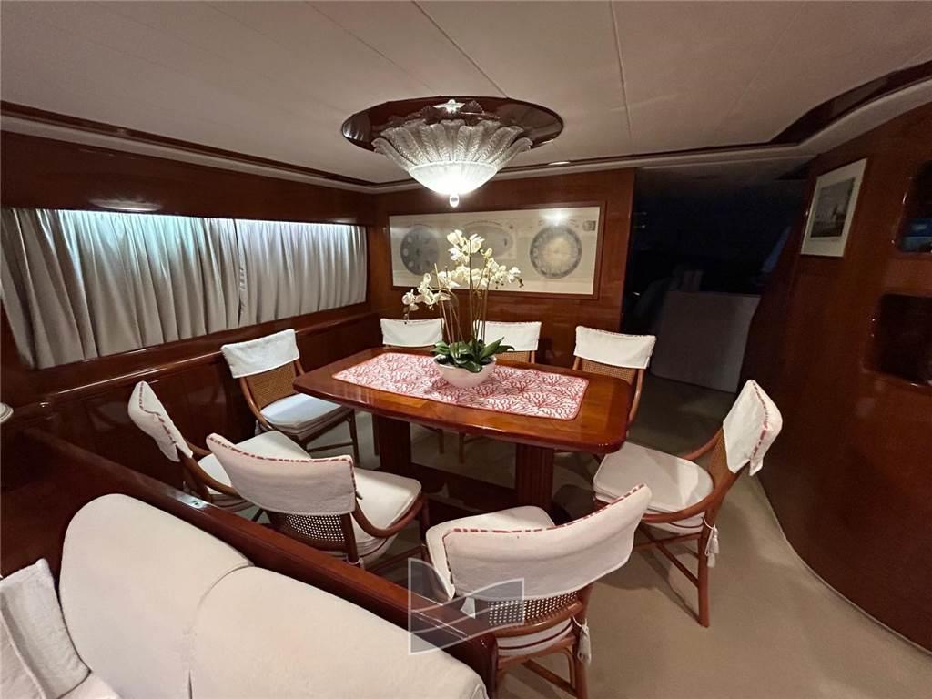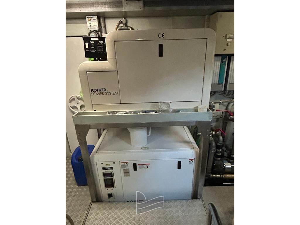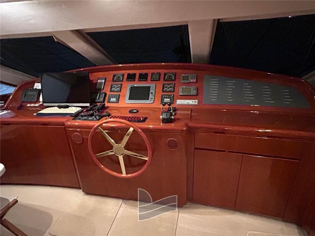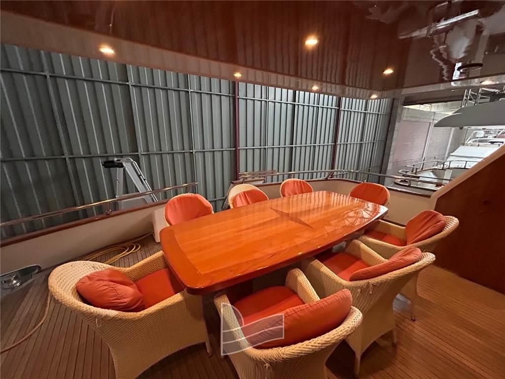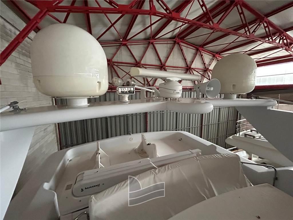 Allarme motore, Camminamenti laterali in teak, Doccia esterna, Elica di poppa - stern thruster, Elica di prua - bow thruster, Faro orientabile, 2 Flap idraulici, Impianto antincendio, Lavaggio catena, Passerella (idraulica a scomparsa), Piattaforma (di poppa in teak), Pompa di sentina automatica, Pompa di sentina manuale, Ponte in teak, Porta ingresso, Pozzetto Teak, Presa 220V banchina, Raddrizzatore, Salpa Ancore Elettrico, Scala reale, Scaletta da bagno, Tavolo pozzetto, Tromba, Winch tonneggio di poppa, Winch tonneggio di prua.