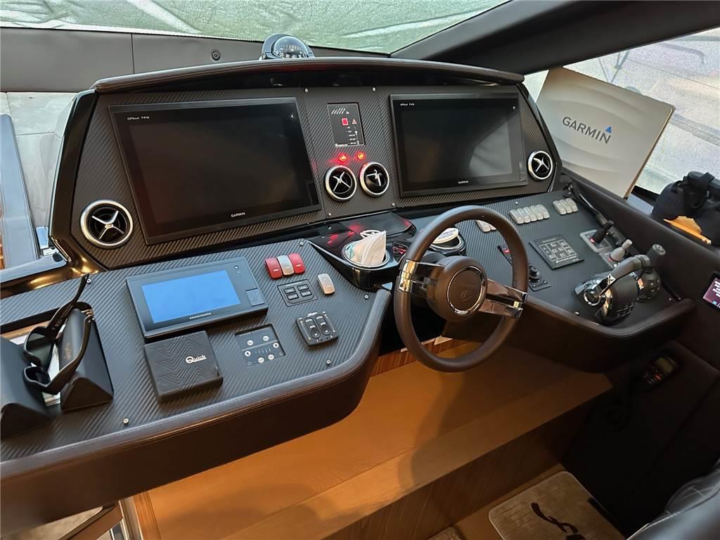 AIS, Ancora (inox 45kg), Antenna radar, Autoclave, Batterie, Bussola, Caricabatterie, Computer di bordo, Contametri catena (Quick), Display (Volvo), Doccia esterna, Ecoscandaglio, Elica di prua - bow thruster (side power), Faro orientabile (con comando a distanza), Flap idraulici, 3 GPS (Garmin 8416), Hard top (soft top in vetroresina), Indicatori Flaps, Joystick (Volvo), Luci di cortesia, Luci subacquee, Pannelli Solari (con Victron), Passerella (elettroidraulica a scomparsa), Piattaforma (idraulica, teak), Pilota automatico, Pompa di sentina elettrica, Porta laterale, Pozzetto Teak, Presa 220V banchina, Presa acqua banchina, Radio VHF, Salpa Ancore Elettrico, Scaletta da bagno, Sedile Copilota, Stabilizzatori (Seakeeper 9 2019), Tavolo pozzetto, Winch tonneggio di poppa