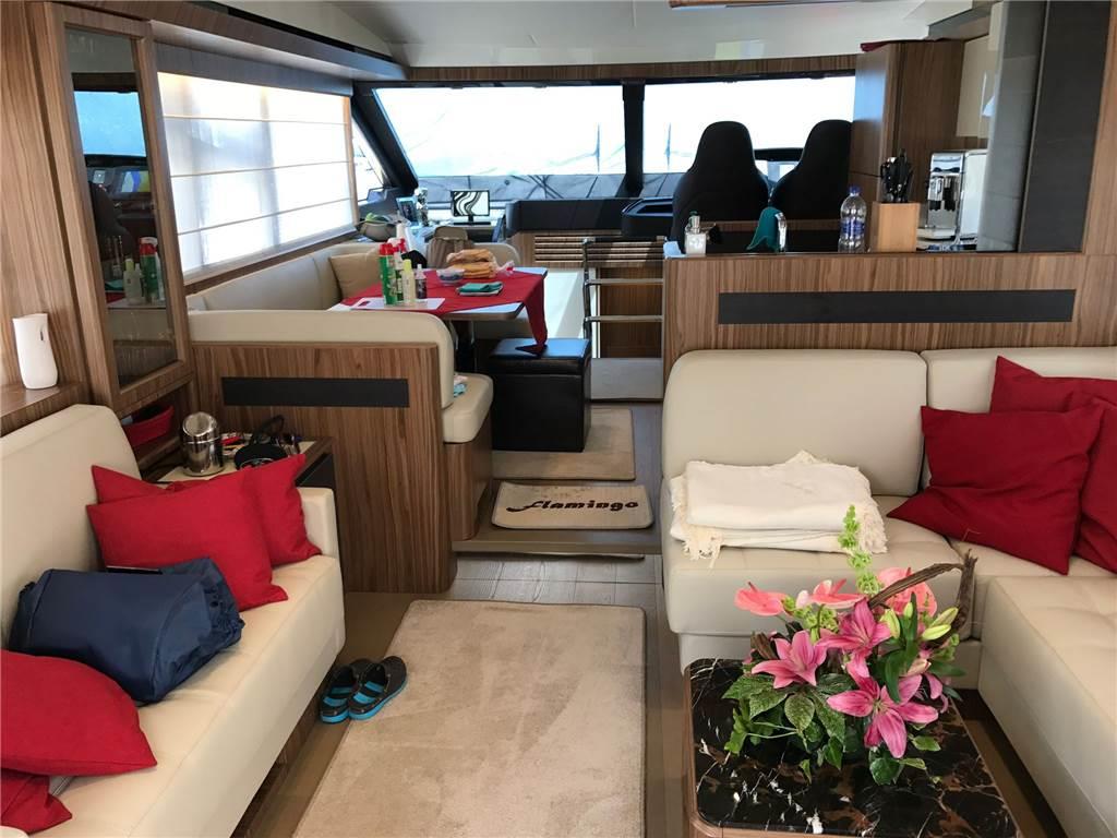 Yacht di lusso con tre zone prendisole dedicate: una a prua, con lettino prendisole e poltrone reclinabili e due sul flybridge, che offrono uno splendido balcone con vista sul mare. Tre cabine doppie con servizi e cabina marinaio con servizi.