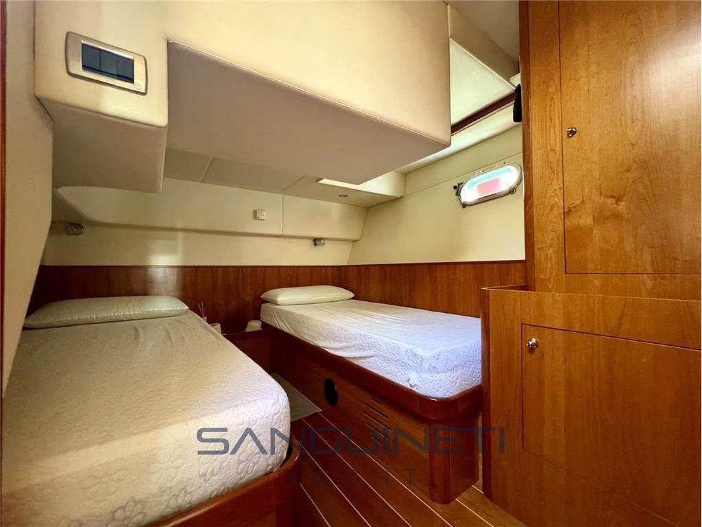1 cabina matrimoniale a prua, 1 cabina letti in piano, 1 cabina letti a castello, doppi servizi. Cucina con ingresso indipendente dalla dinette esterna