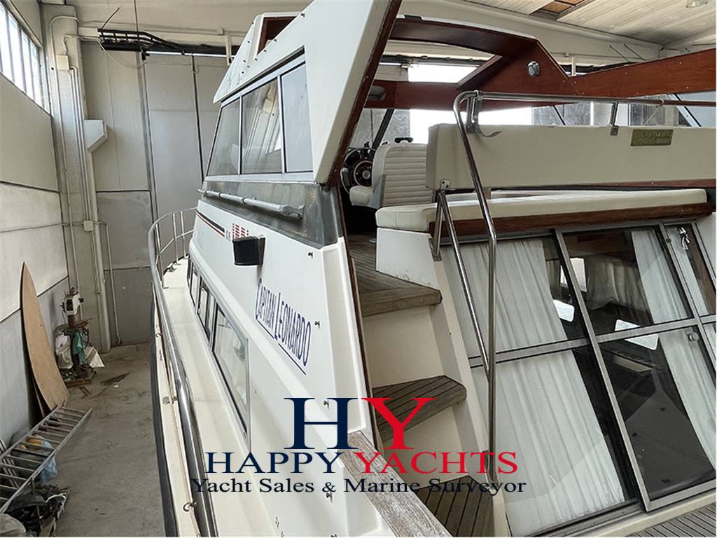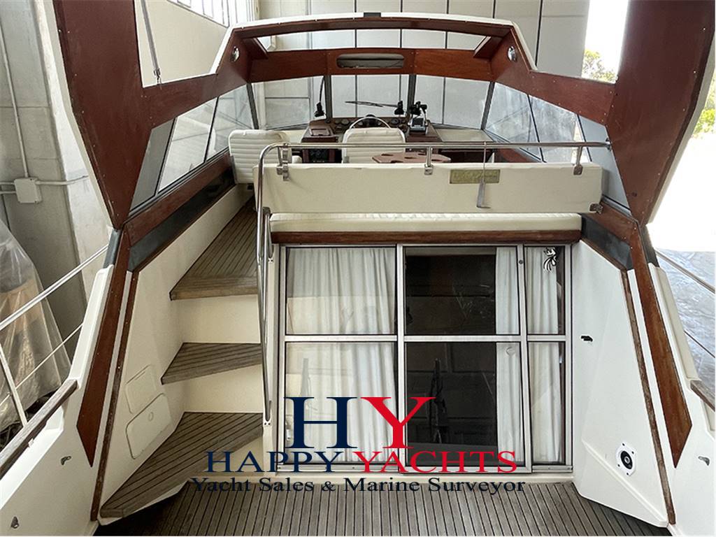 TEAK NEL POZZETTO E SUL FLY - PALNCIA DI POPPA IN ACCIAIO E TEAK - SCALETTA DA BAGNO - DOCCIA ESTERNA - GRUETTE PER TENDER - ANTENNA TV - VERRICELLO ELTTRICO - LUCI ESTERNE - CUCINA CON FUOCHI A GAS, LAVELLO E FRIGORIFERO - POMPE DI SENTINA -