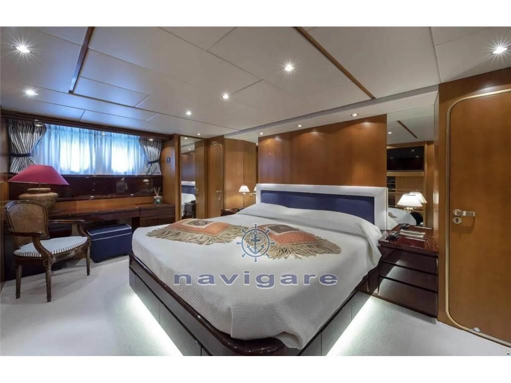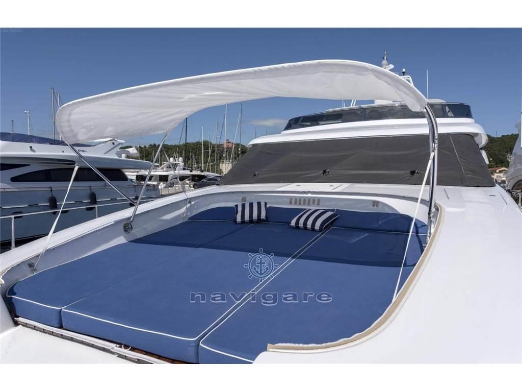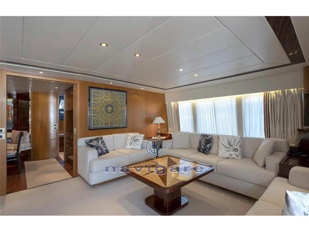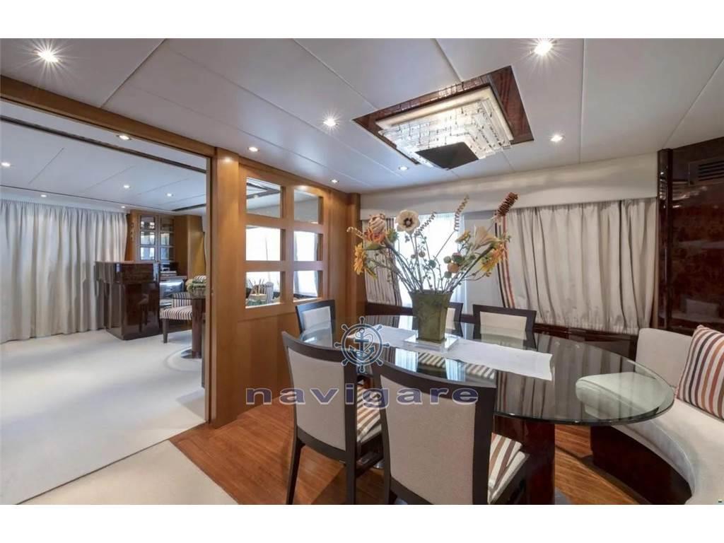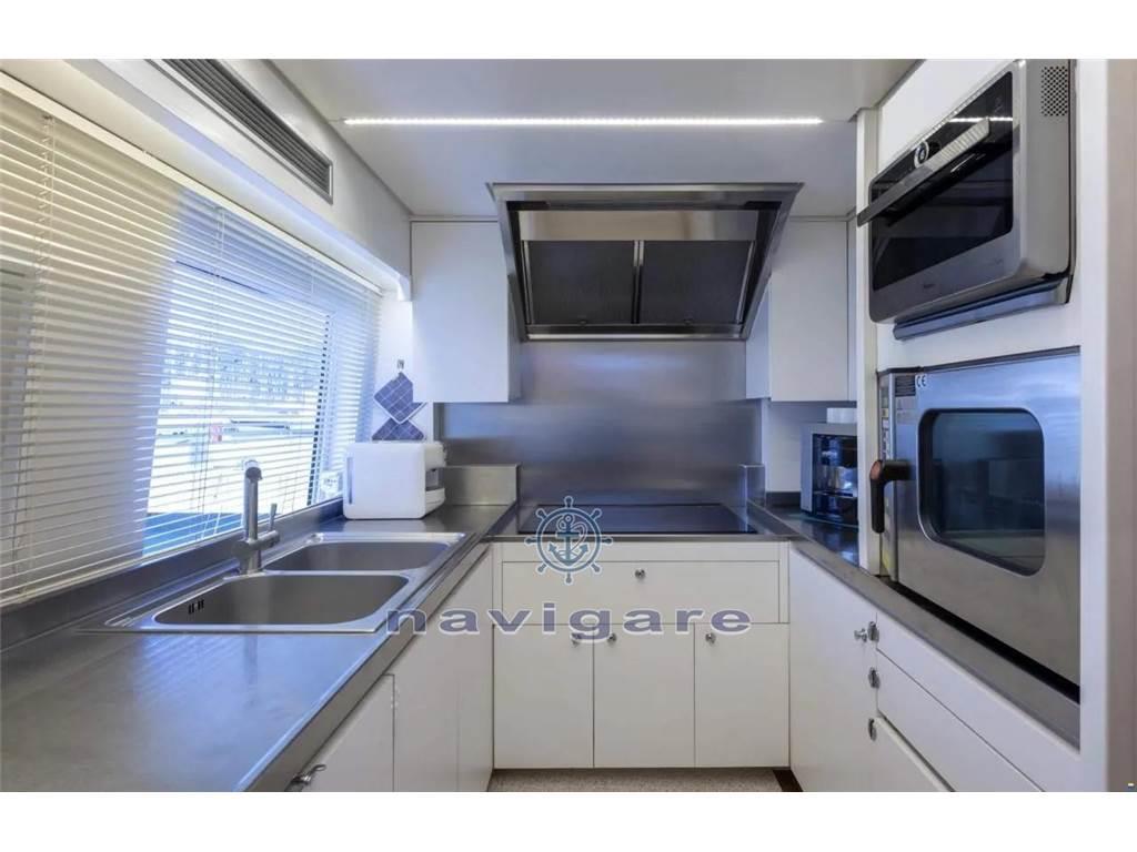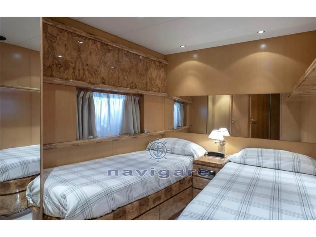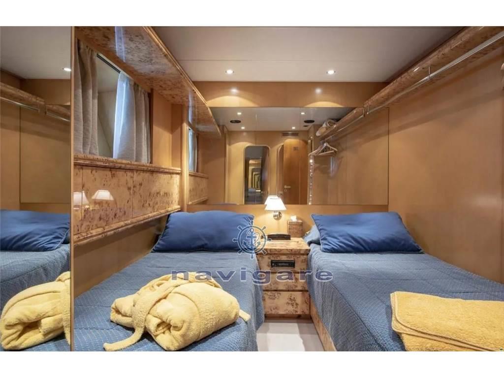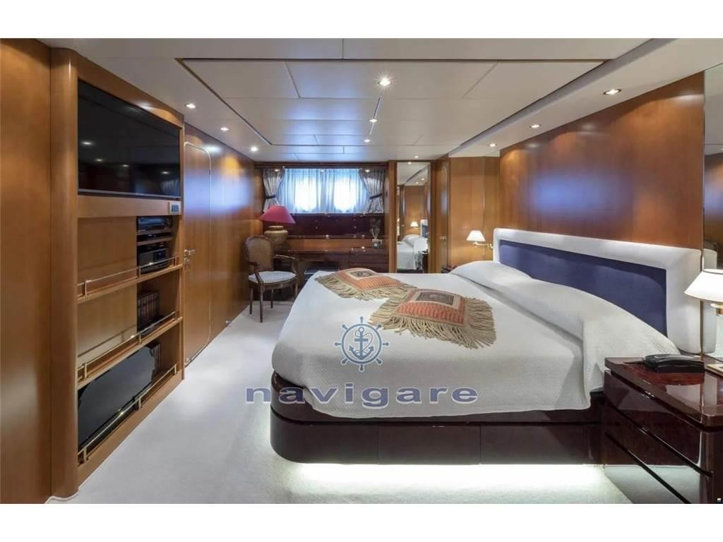 Allarme fumo/gas, Allarme motore, Ancora, Autogonfiabile, Batterie, Bussola, Caricabatterie, Contamiglia, Doccia esterna, Doppia timoneria, Ecoscandaglio (Furuno), Elica di prua - bow thruster, Flap idraulici (N°2), GPS (Furuno), Gruette per tender su fly, Luci di cortesia, Passerella (IDRAULICA), Piattaforma, Pilota automatico (Furuno), Plotter, Pompa di sentina automatica, Pompa di sentina manuale, Porta ingresso, Porta laterale, Pozzetto Teak, Presa 220V banchina, Presa acqua banchina, Radar, Raddrizzatore, Radio VHF (Furuno), Rollbar, Salpa Ancore Elettrico, Scaletta da bagno, Stabilizzatori (Gyroscopic stabilizer SEAKEEPER mod. 26), Tromba, Winch tonneggio di poppa, Winch tonneggio di prua