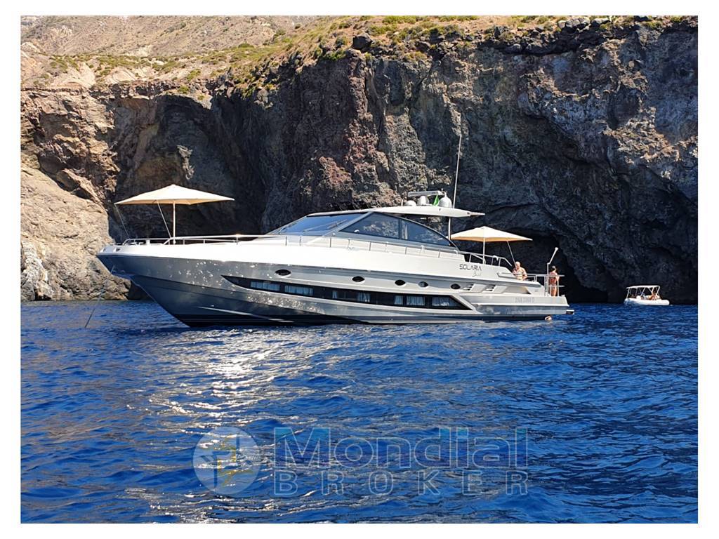 Il Solaria Beach è un 54 piedi che nasce dalla esperienza iniziata nei cantieri CONAM nel 1980, come evoluzione del Solaria 40, imbarcazione già innovativa ed unica nel suo genere. E’ uno dei più grandi e confortevoli “walk around” disponibile sul mercato caratterizzato da straordinari spazi esterni studiati per garantire a tutti gli ospiti una splendida giornata al mare, al sole e all’aria, pur offrendo all’interno una ottima abitabilità per tre coppie in tre confortevoli cabine ognuna con bagno, oltre alla dinette con cucina e divano trasformabile in letto, ed alla cabina del marinaio. Per l’accesso al mare, unica nel suo genere, è dotata di una plancia di poppa a scomparsa da 4 mq comandata elettricamente con annessa comodissima scala da bagno anch’essa a scomparsa ad estrazione elettroidraulica. Due ombrelloni da 2,4 mt coprono l’ampio prendisole di poppa e i due divani contrapposti a prua da 8 posti con tavolo centrale. L’ampio spazio esterno coperto è occupato da due divani da 8/10 posti ed un tavolo centrale pieghevole oltre ad una seconda cucina esterna con frigo. Omologazione: CE – Classe “A”