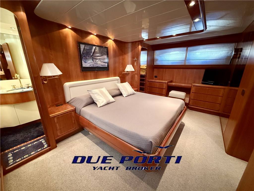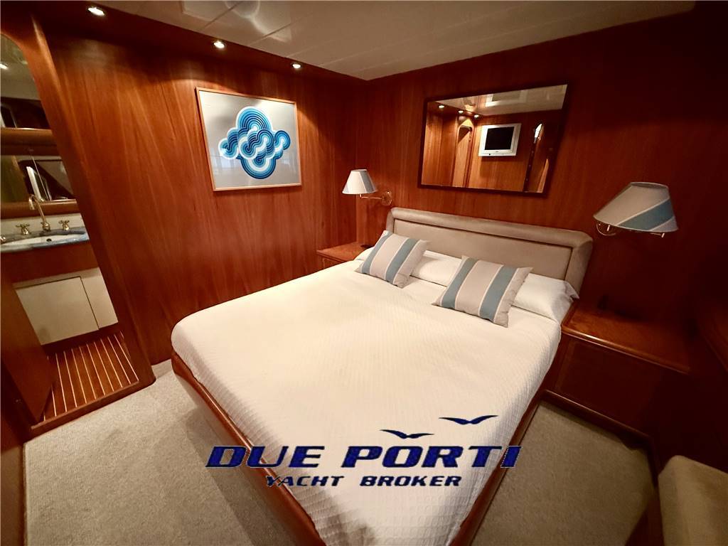 Cabina armatoriale a tutto baglio a centro barca con bagno ensuite e box doccia separato, cabina armadio lato sx.