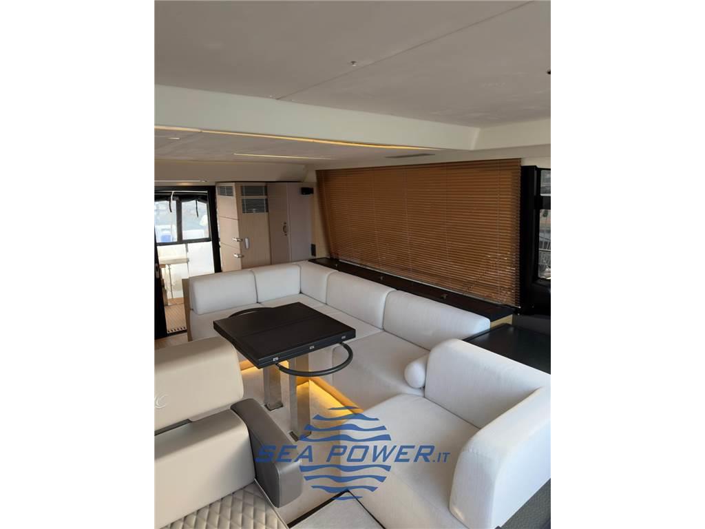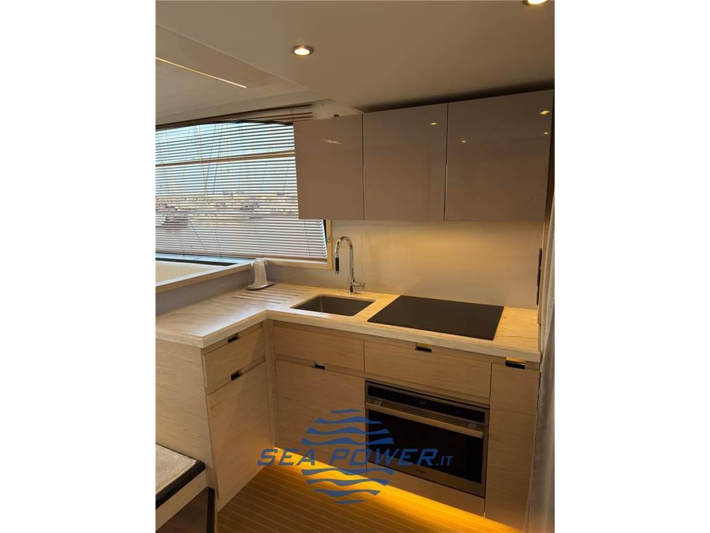 Full optional: plancetta idraulica (tender lift), extra joystick per manovra dal pozzetto, Ancora digitale Volvo Penta, Stabilizzatore Seakeeper 6, Antenna TV Satellitare, impianto fotovoltaico, impianto audio system BOSE, bimini a prua con pali in carbonio.
