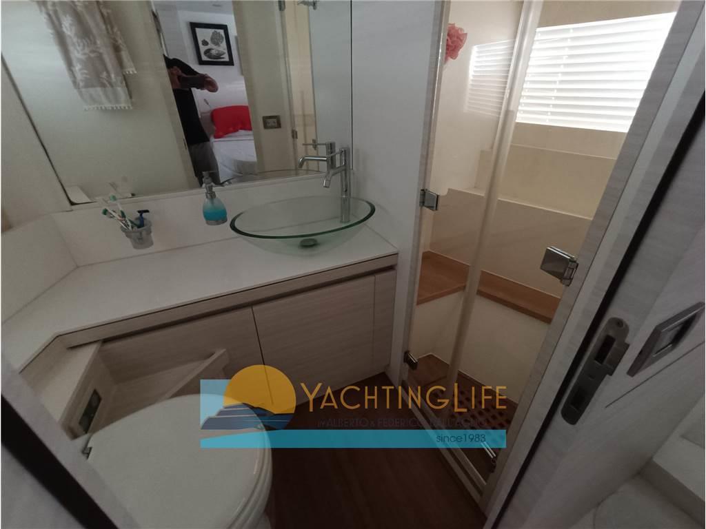 1 Matrimoniale italiana, 2 Doppia in piano, 1 Cabina equipaggio, 1 Dinette, 1 Cucina, 1 Toilette Equipaggio, 2 Toilette doccia no bidet