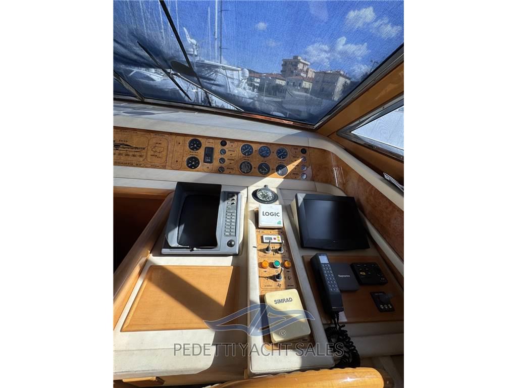 Gli interni raffinati offrono ampie e luminose zone living, con una dinette spaziosa e una seconda dinette con carteggio in timoneria. La disposizione prevede tre cabine confortevoli con finiture in legno di pregio e dettagli curati, oltre a una cabina equipaggio separata.