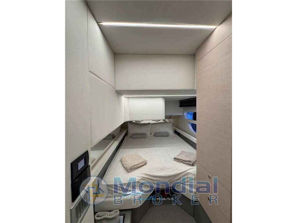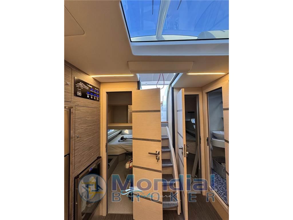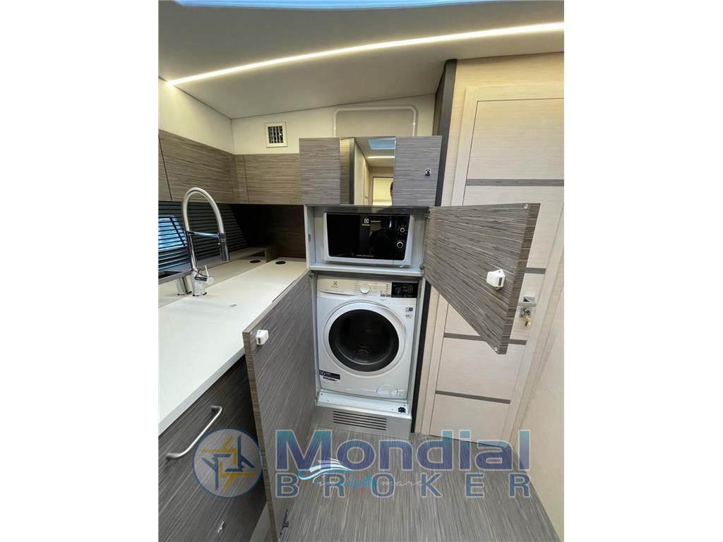 Aria condizionata (camere e disimpegno notte), Cassaforte, Controllo Domotica, 2 Cucina (interna ed esterna), Dissalatore (150lt/h Schenker Zen 150), Forno, Frigorifero esterno, Frigorifero interno, ICE Maker (con dispenser acqua separato), Lavasciuga (8 kg), Lavastoviglie (inclusa nel kit service room), Microonde, Piastra elettrica, Radio AM/FM, Serbatoio Acque Nere, Stereo (bluetooth/FM//MP3), Telecamera (pozzetto posteriore e sala motori), Telo copriconsolle, Tendalino (posteriore in pali in carboni), 2 WC marino elettrico (acqua dolce silenzioni), Winecooler, Doppia scaletta a scomparsa, cucina esterna (con lavello, frigo ,piastra ad induzione 4 fuochi e frigorifero), parabrezza frontale laterale in cristallo, pulpito inox con draglia e bitte prua/poppa, pavimento bagni SICIS, sistema ACP protezione correnti galvaniche Volvo, 2 Glass Cockpit 12', Interceptor Volvo con Auto Trim + Cruiser control, caricatori wireless smartphone (uno per ogni cabina), caricabatterie dedicato solo al generatore, catena inox 60 metri diametro 12 mm, telo copricucina, antivegetativa, verniciatura hard top grigio metallizzato, ingresso carburante e acqua sdoppiato da entrambi i lati