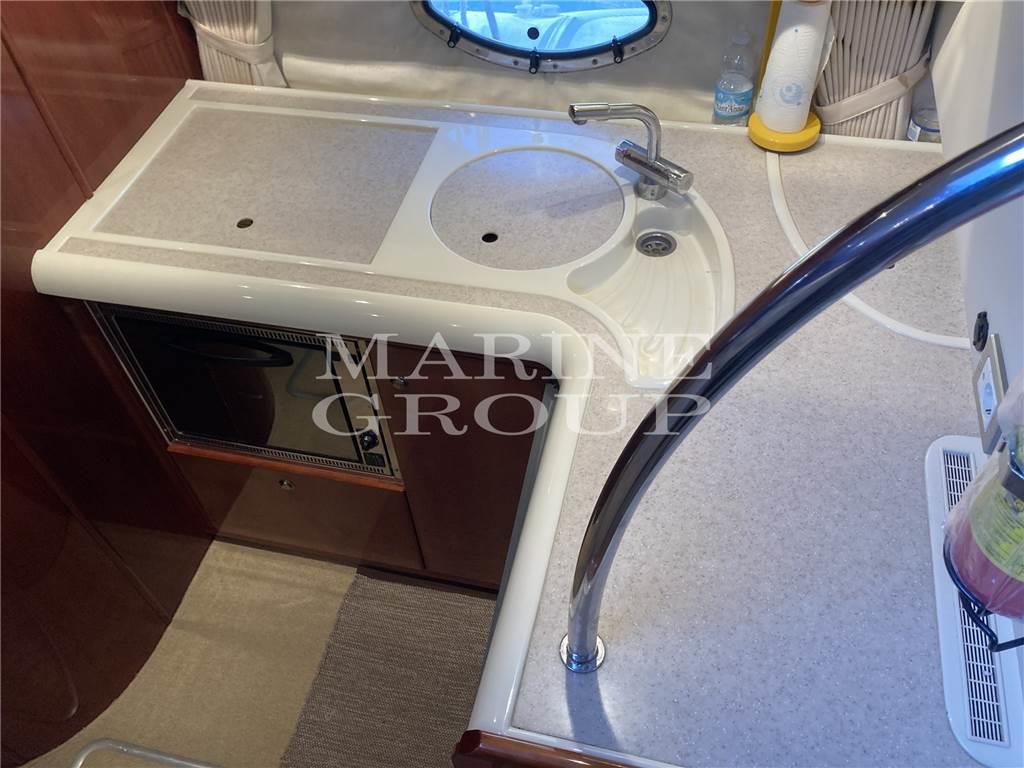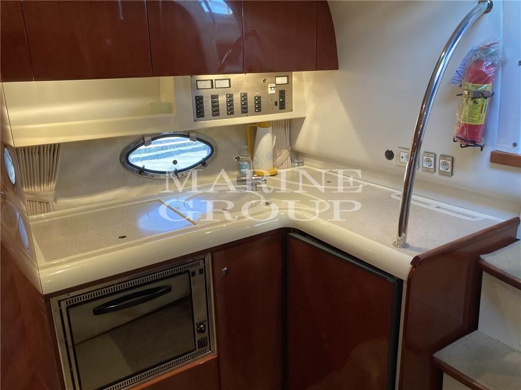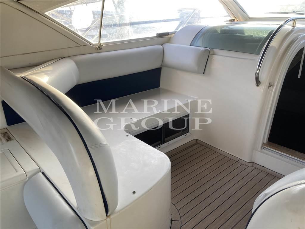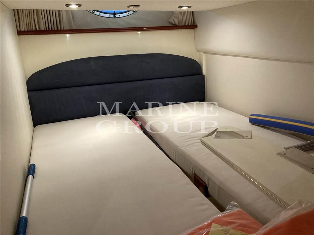 Arredi in essenza in ciliegio lucida in eccellenti condizioni. Cucina attrezzata, divano semicircolare con tavolino abbattibile; Cabina a prua con letto matrimoniale e bagno completo con box doccia separato; cabina a centro barca a tutto baglio con letti singoli in piano trasfrormabile in matrimoniale.
