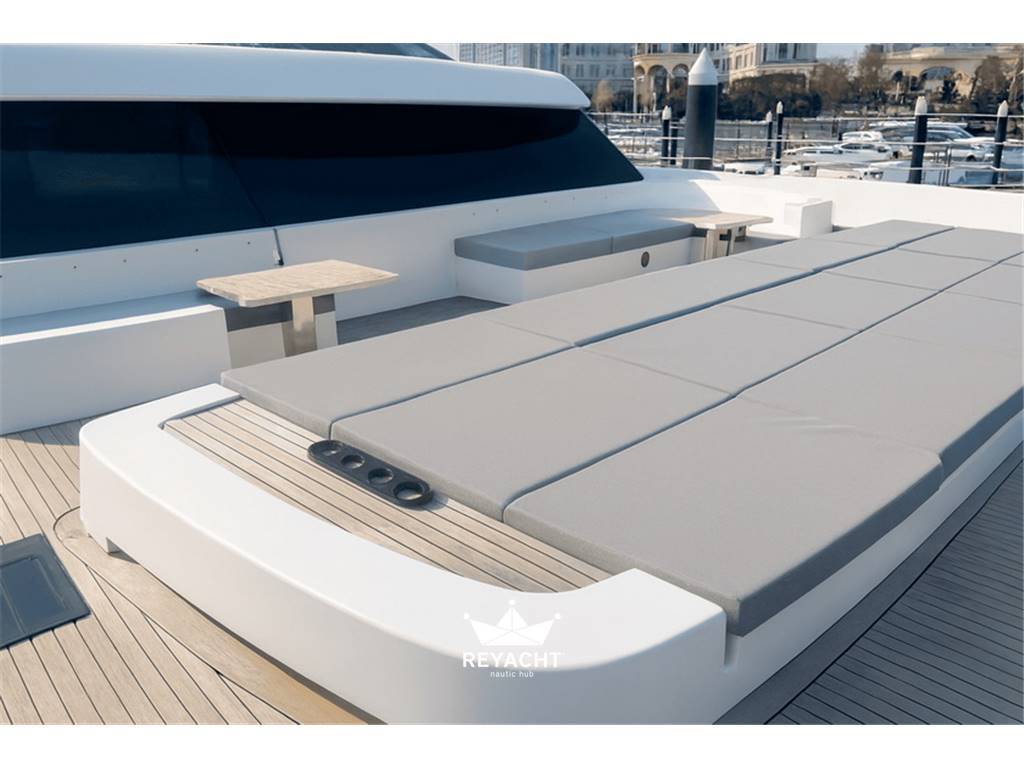 während die weitläufige Flybridge – ausgestattet mit Whirlpool – einen unvergleichlichen Blick auf