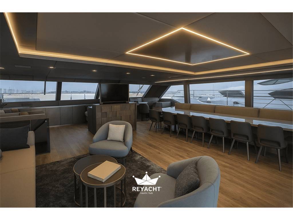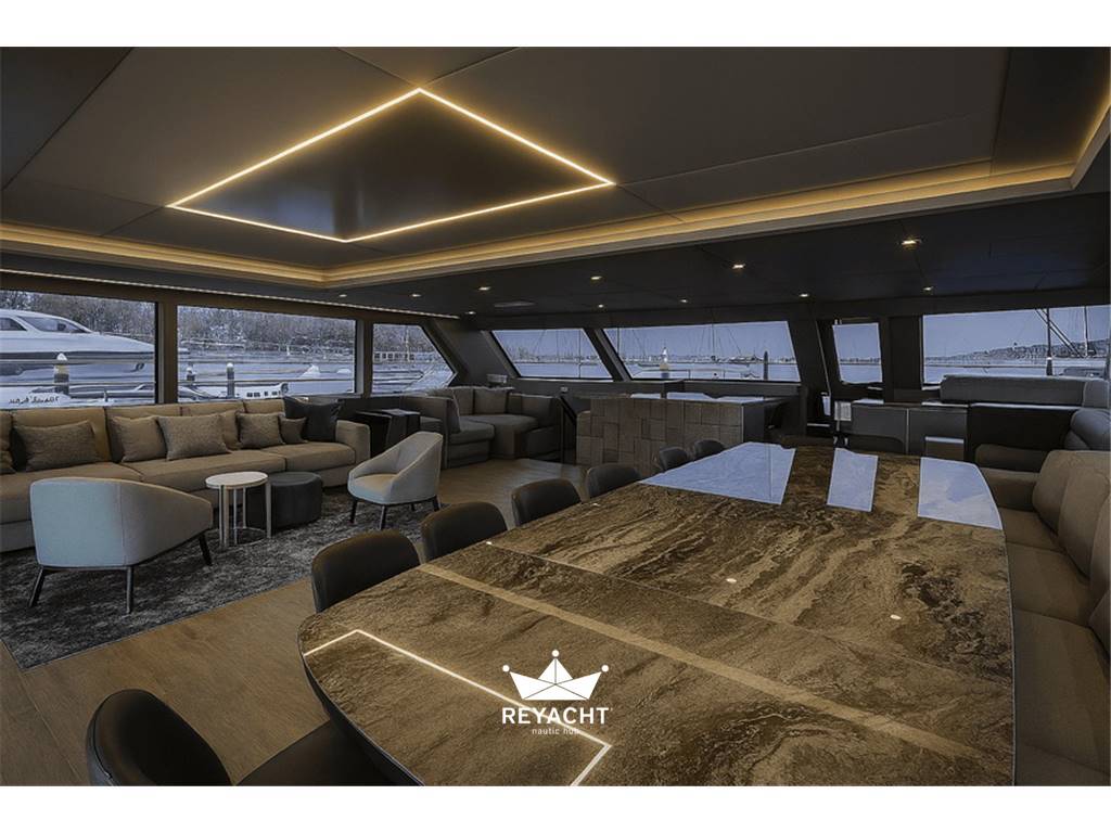 Custom high‑end finishes and extraordinary interior volumes make this yacht the perfect