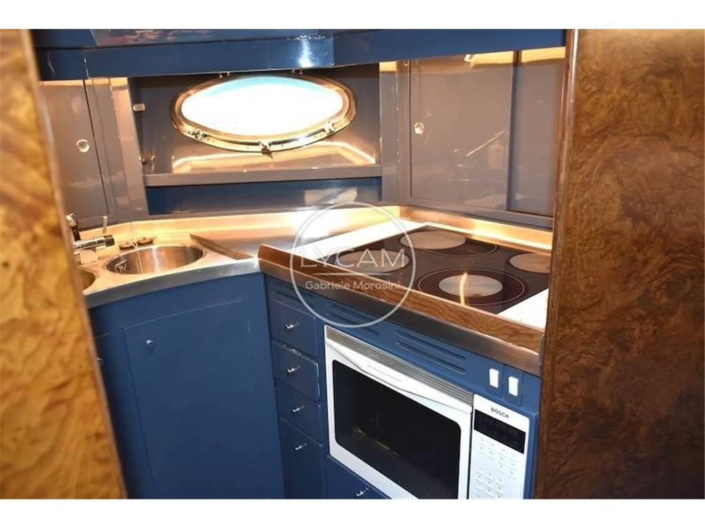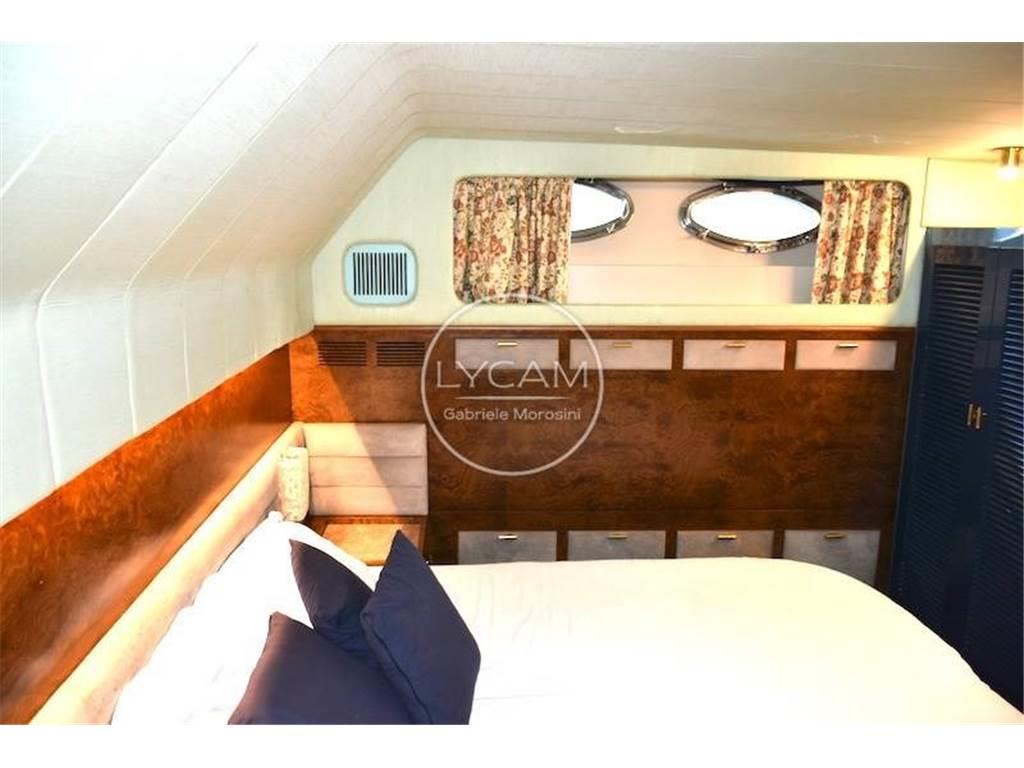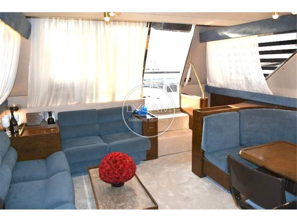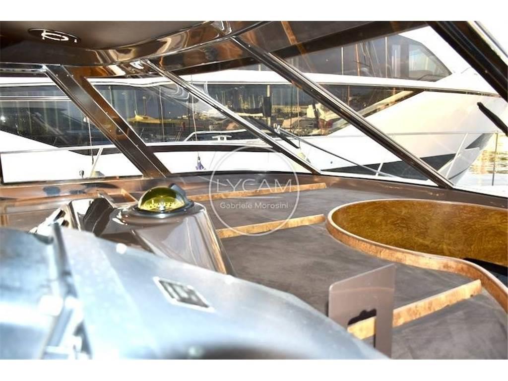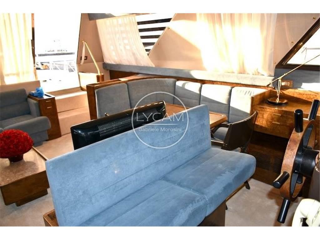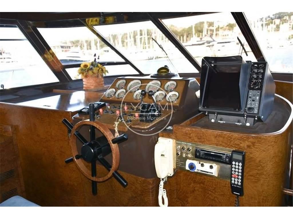 Doppia stazione di comando - fly e interno - con strumentazione motori originale, angolo barra, bussole 2, contamiglia, radar Furuno, VHF, autoradio con altoparlanti salone ,pozzetto e fly, autoradio in ogni camera, faro navigazione notturna con controllo doppio, antenna tv.