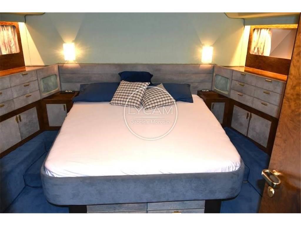 Sottocoperta: 1 cabina armatore matrimoniale di poppa con bagno separato, 1 cabina ospiti matrimoniale a prua con bagno separato, 1 cabina ospiti con 2 letti singoli e bagno, cabina per 2 equipaggio;