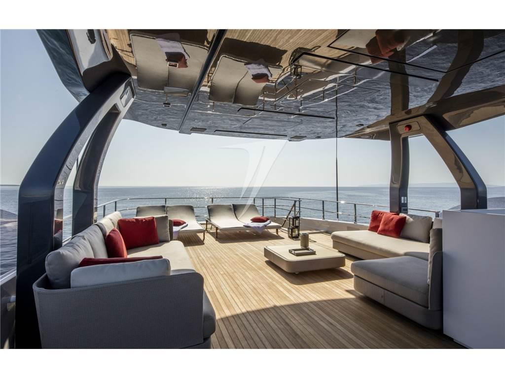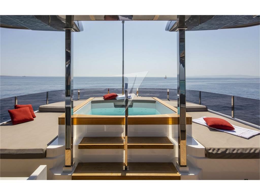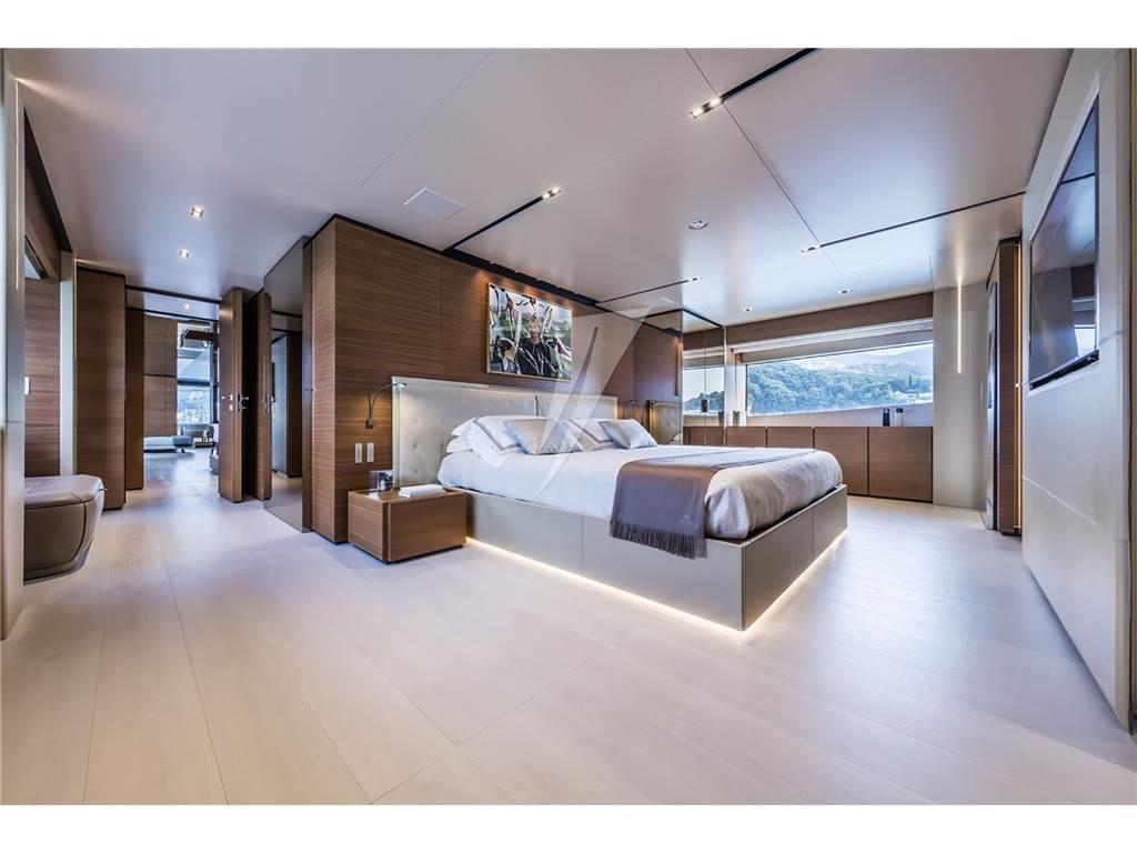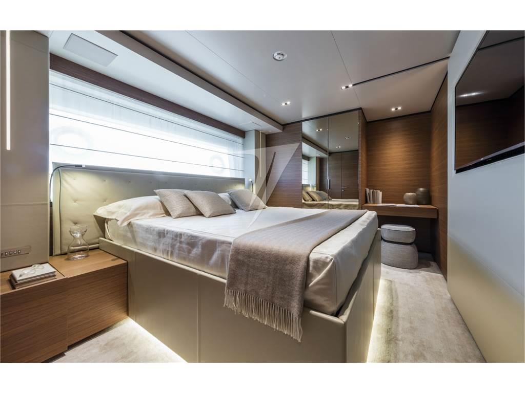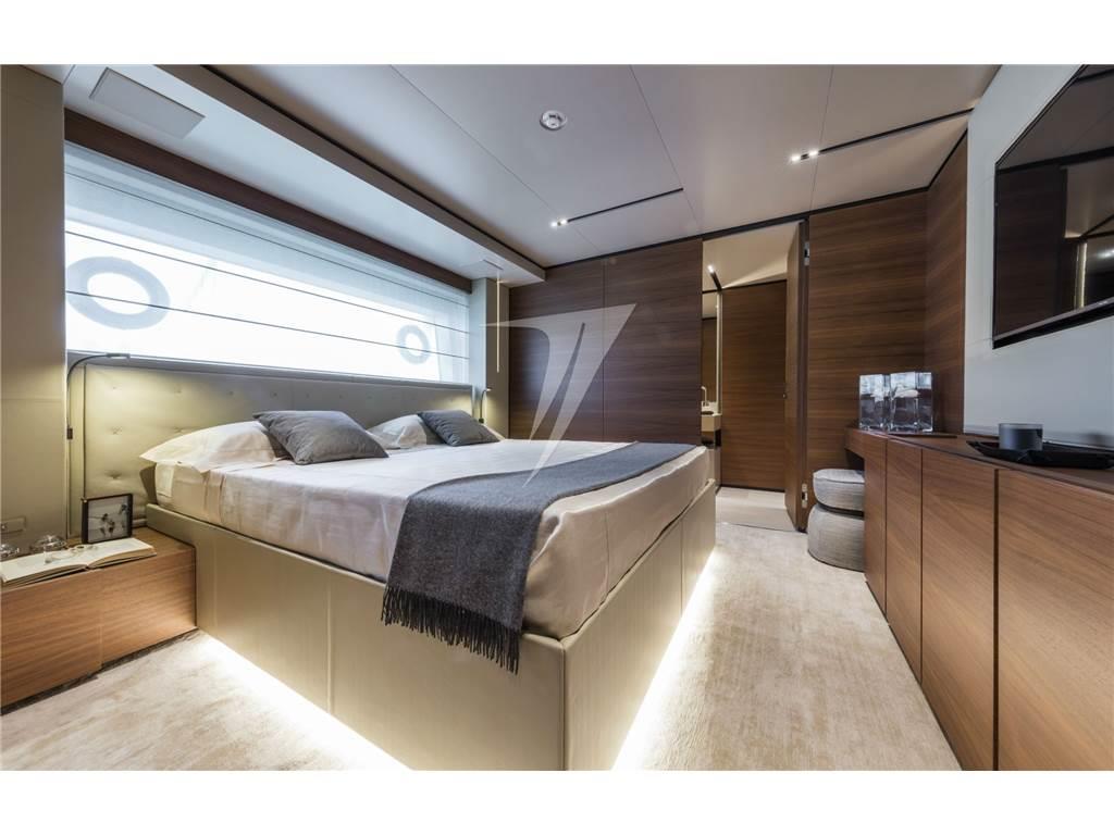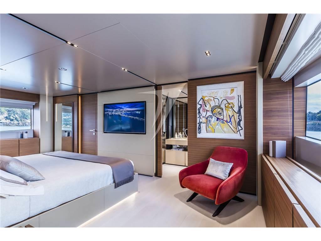 1 Doppia in piano, 4 Matrimoniale italiana, 4 Cabina equipaggio, 5 Toilette. Persone trasportabili: 20.