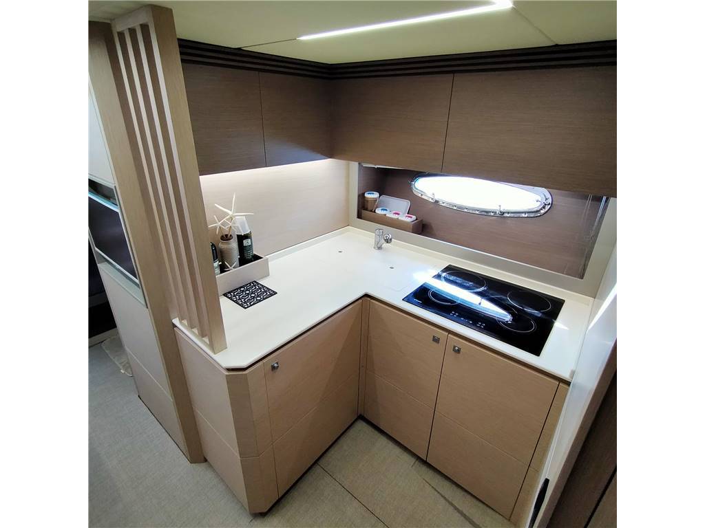 poppa rivestita in Teak con scaletta di risalita, Pozzetto in teak, Mobile in pozzetto con lavello, piano cottura elettrico e frigorifero,