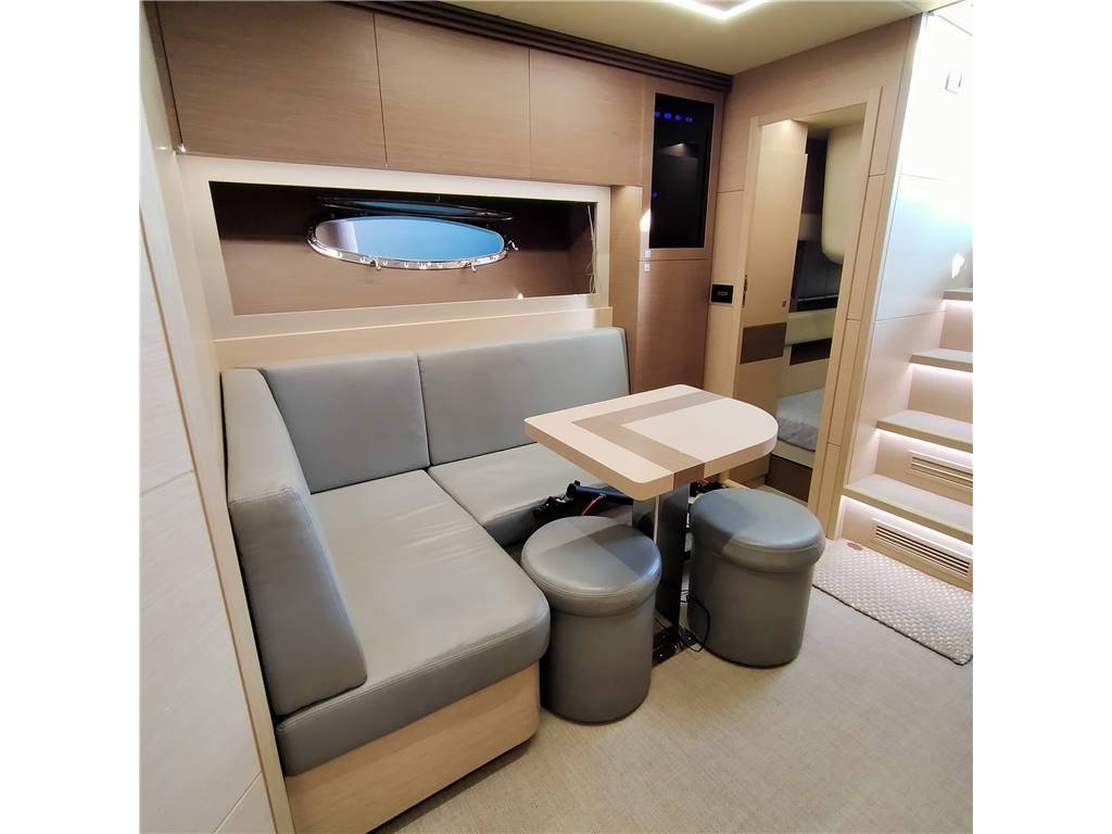 Computer motori, GPS plotter cartografico touch screen, Radar, Pilota automatico, profondimetro, Radio VHF, Flaps e trim idraulici con indicatori in plancia, Elica di prua, varie utenze in plancia