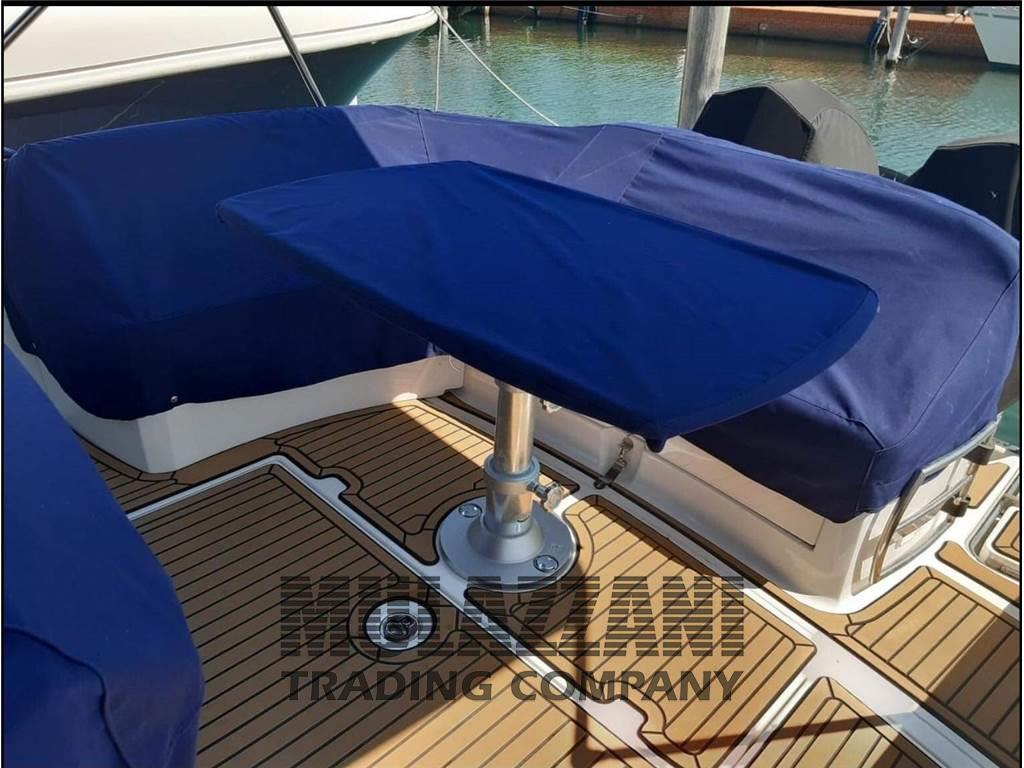 8 Altoparlanti (impianto nuovo), Barometro, Copriscafo, Cucina, Cuscineria completa (nuova), Cuscineria di poppa, Cuscineria di prua, Cuscineria Pozzetto, 2 Fornello (in dinette e in pozzetto), Frigorifero interno, Ghiacciaia (in pozzetto), Macchina caffè, Prese interne 12v, Prese interne 220v, Radio AM/FM, Stereo, Telo copriconsolle, Telo coprisedile, Tendalino, WC marino elettrico, Zattera di salvataggio (da revisionare)