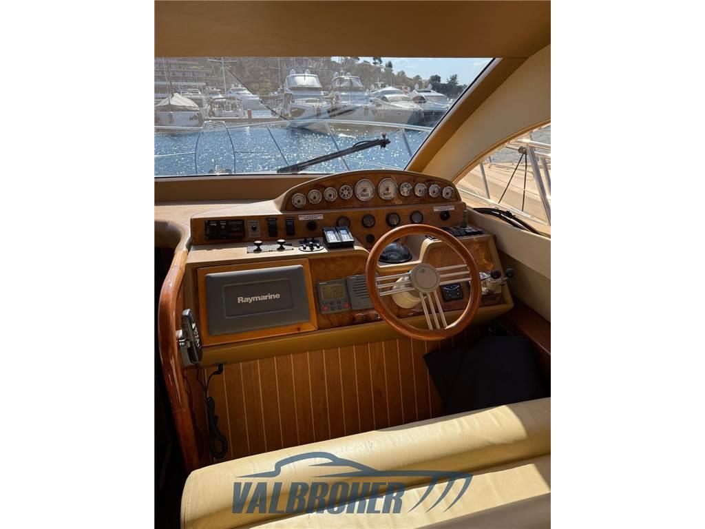Flybridge moderno con grandi vetrate. Imbarcazione dotata di due ottimi motori Volvo Penta D9 common rail in linea d'asse. Tre cabine doppie e cabina equipaggio.