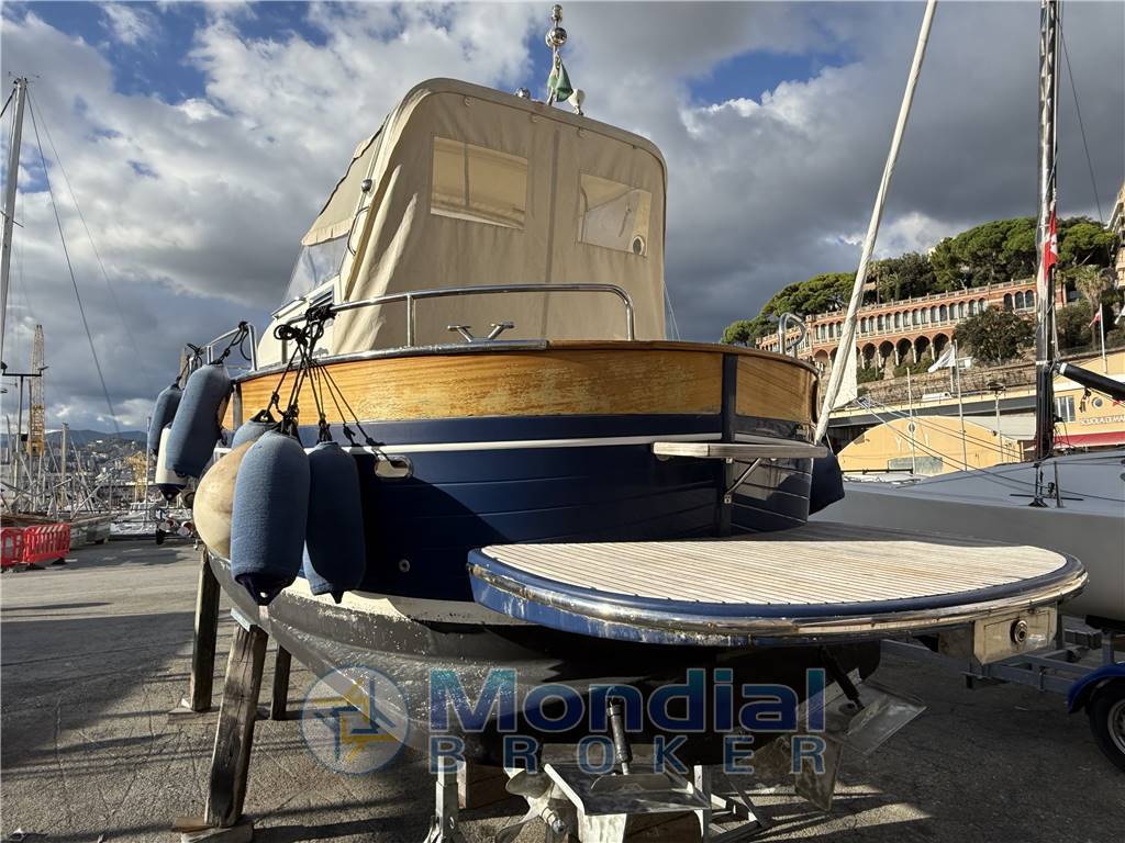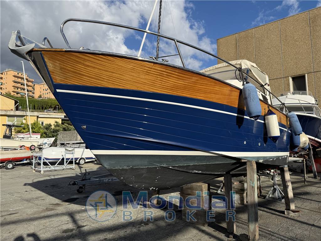 Splendido Apreamare 28, gozzo cabinato, la barca nel 2019 è stata completamente portata a nuovo da cantiere specializzato, manutenzione straordinaria ai motori, sala macchine rifatta compreso la parte insonorizzazione, verniciature scafo e legni, tendalino, cuscinerie, sostituito le manette tradizionali con manette elettroniche, nel 2024 sostituiti flaps . Motorizzata con 2 motori turbodisiel VM da 170 HP, trasmissione in linea d'asse,si naviga a una velocità di crociera di 23 nodi con consumi irrisori, interni eleganti con una cuccetta a prua molto spaziosa, un bagno separato con WC, lavabo e doccia.Al momento la barca si presenta in ottimo stato con necessita di sistemazione Teack .