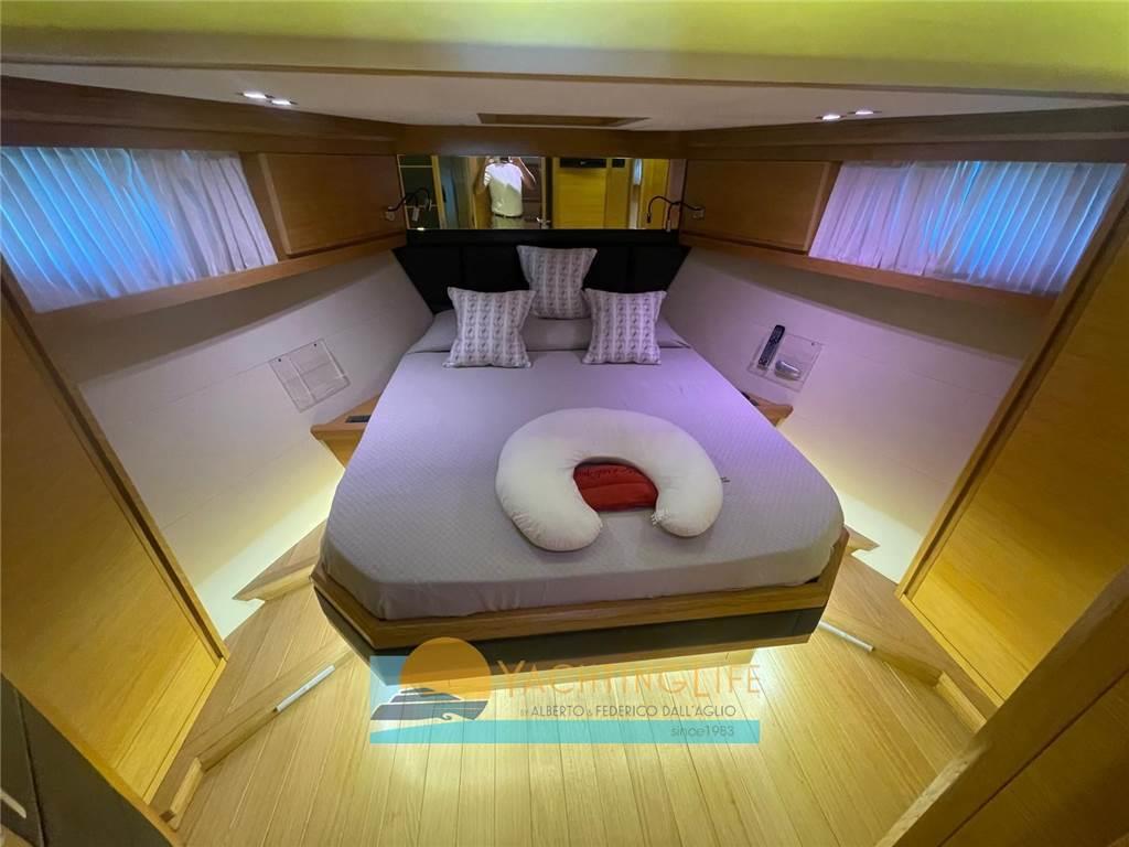 2 Matrimoniale italiana, 1 Matrimoniale francese, 1 Doppia in piano, 1 Cabina equipaggio, 3 Toilette con doccia, 1 Dinette, 1 Cucina, 1 Salone, 1 Toilette Equipaggio