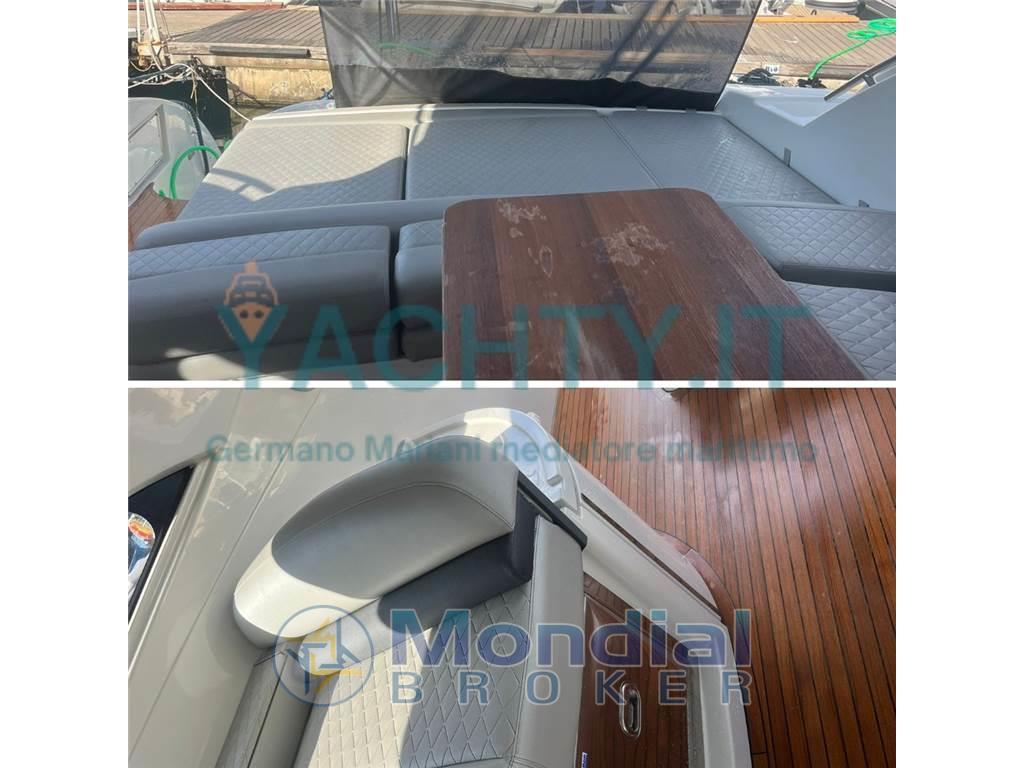 Gli interni sono curati in ogni dettaglio: cabina armatoriale a prua con bagno en suite, cabina ospiti doppia, secondo bagno, cucina attrezzata e dinette conviviale. Gli spazi sono luminosi, climatizzati e rifiniti con materiali pregiati, per offrire massimo comfort a bordo.