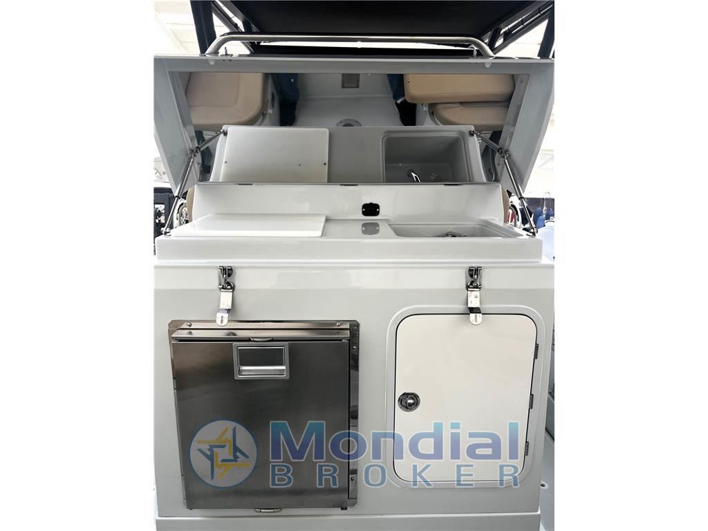 Zar 95 Sport Luxury con 2 Suzuki da 300hp Cabina con letto matrimoniale, bagno separato con wc marino elettrico ed acque nere, lavabo e doccia; divano di poppa ed a prua dove trovano posto due grandi aree prendisole convertibili in altrettante dinette; carena, a V profonda, dotata di redan laterali a garanzia di prestazioni, stabilità e morbidezza in navigazione. Ben accessoriato con T.Top rigido Custom nuovo, doppio tendalino sole estensibile, elettronica completa, Circuito 220 V., Verricello elettrico, Frigorifero e cucina, plancette estese di poppa , cuscinerie complete . Lucidatura completa parti in vtr e tubolari , T Top inox nero satinato nuovo 2025 Condizioni assolutamente eccellenti