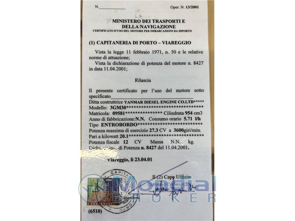 Motorizzata con motore entrobordo Yanmar 3GM30, completa di cuscinerie prendisole, doccetta in pozzetto e scala bagno;