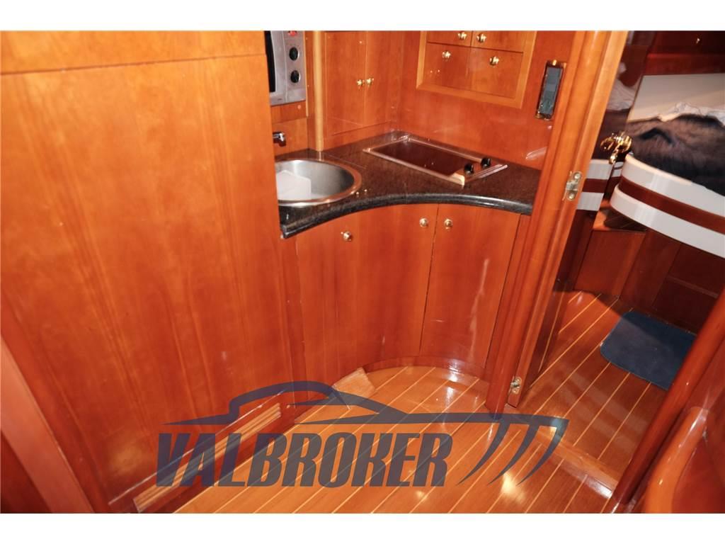 Cucina interna e angolo cottura con fornello e lavello in pozzetto. Aria condizionata, generatore, elica di prua, passerella idraulica, radar, autopilota.