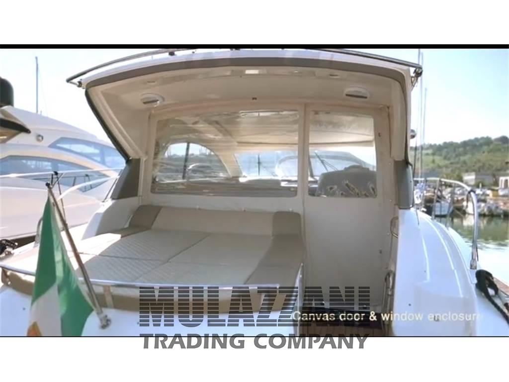 6 Altoparlanti, Aria condizionata, Barometro, BBQ/ Grill, Boiler (elettrico), Cappottina (a prua), Cassetta di pronto soccorso, Congelatore, Copripozzetto (estivo e invernale), Cucina, Cuscineria completa, Cuscineria di poppa, Cuscineria di prua, Cuscineria Pozzetto, Dotazioni di sicurezza entro 50 miglia, Frigorifero esterno, Frigorifero interno, Giubbetti di salvataggio, Impianto TV, Inverter, Oscuranti, Piastra elettrica, Prese interne 12v, Prese interne 220v, Salvagente anulare con cima munita di boetta luminosa, Stereo (doppio amplificatore e subwoofer), Telecamera (dinette e sala macchine), Teli copri finestra, Tendalino (in pozzetto), TV (32" in dinette), 2 WC marino elettrico, Zattera di salvataggio (da rinnovare), Luci interne Led dimmerabili
