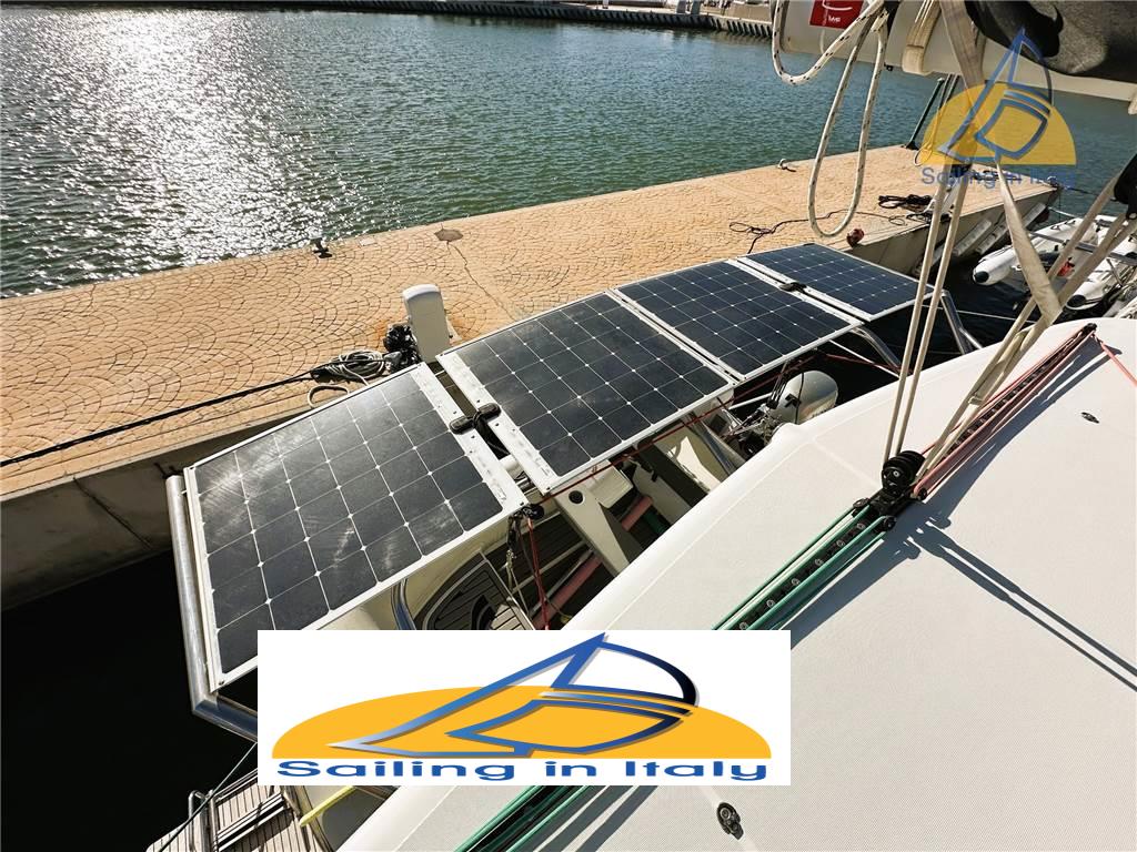 Pack Navigation B&G completo (Radar, Plotter Zeus 12”, Pilota automatico con telecomando, AIS, VHF, ecoscandaglio, log, stazione vento) ; 4 pannelli solari Solbian 4x120W ; Dissalatore, depuratore acqua potabile, Inverter Victron 2kW, monitor Navicolor ; Passerella idraulica Besenzoni ; Tender Highfield con motore Honda 20 HP ; Bimini composito con chiusura Graphite, cuscinerie complete (pozzetto, fly, prua) ;