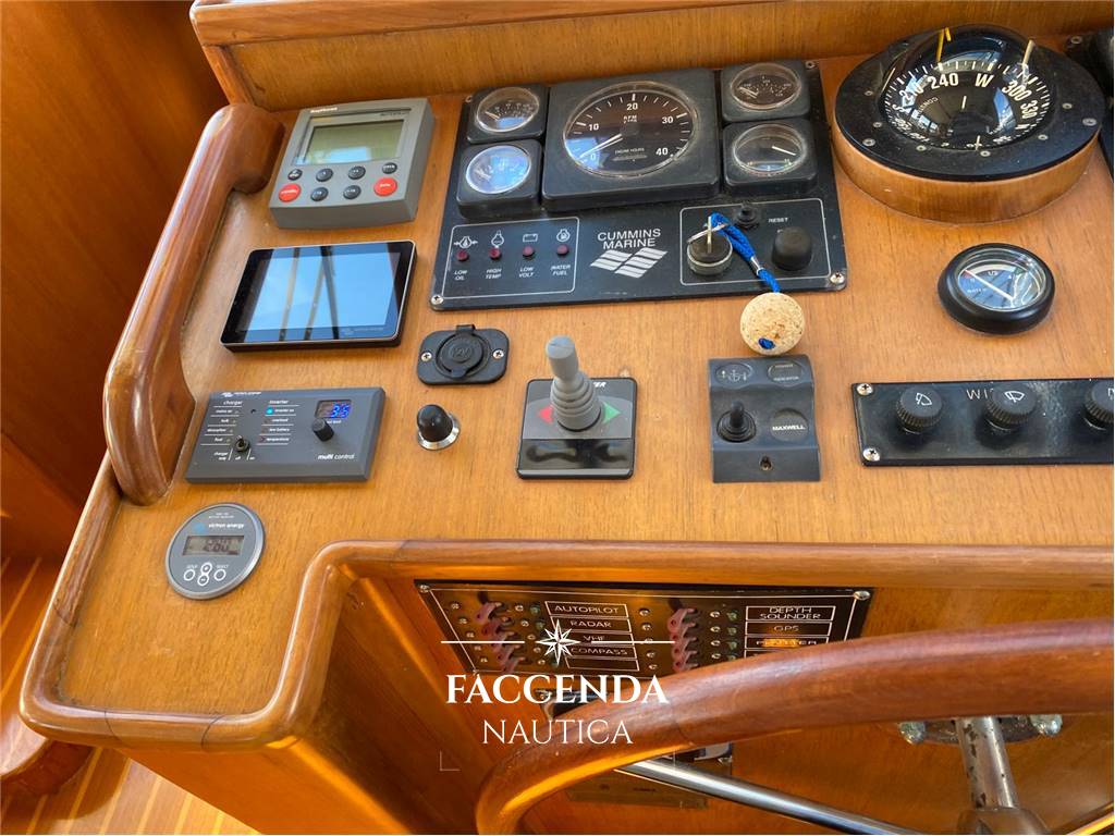 La barca è stata estensivamente refittata nel 2021 e scrupolosamente mantenuta fino ad oggi. I lavori principali sono stati: Impianto elettrico completamente rifatto con nuovi cavi, prese elettriche, caricabatterie Victron, staccabatterie, portafusibili, differenziali, isolatori galvanici, inverter Victron, sensori allarme, Digital Multi Control Victron e sistema di gestione combinato Victron 4 con schermo a colori in plancia e controllo da remoto.