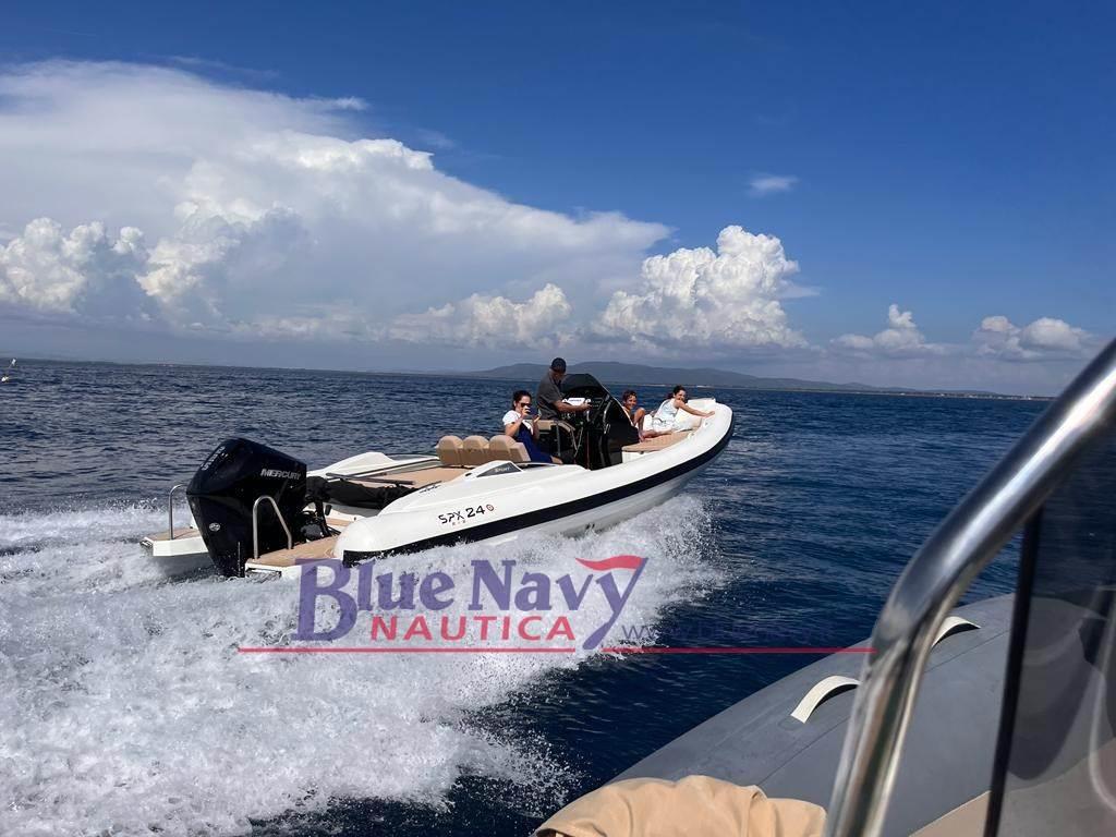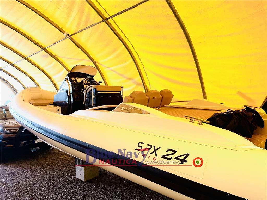 Vendesi presso concessionario ufficiale di SPX Rib - Blue Navy Nautica - gommone SPX 24 versione Sport usato motorizzato con motore 225 V6 Mercury, tutto del 2021, ore di navigazione 113; motore regolarmente tagliandato officina Mercury, rimessaggio invernale al coperto; cosi equipaggiato : tendalino, copriconsole, teak sintetico, doppia doccetta, doppia scaletta di risalita, lavello completo di miscelatore in acciao inox a scomparsa, bitte a poppa e prua, luci LED, ecc