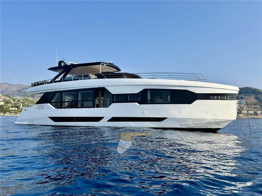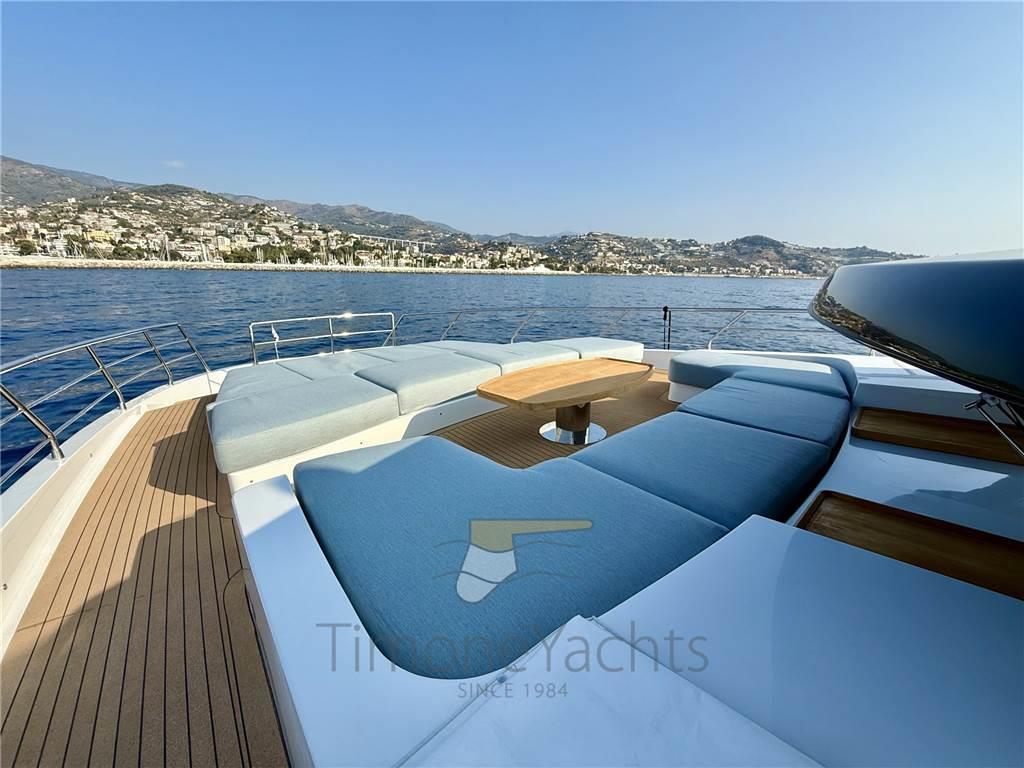 Allarme fumo/gas, Allarme motore, Allarme sentina, Alternatore, Ancora, Auto Dynamic Trim Interceptor, Auto-Trim, Camminamenti laterali in teak, Cavo corrente di banchina, Doccia esterna, Doppia timoneria, Elica di prua - bow thruster, Faro orientabile, Flap idraulici, Garage per tender, Hard top, Impianto antincendio, Indicatori Flaps, Lavaggio catena, Luci di cortesia, Luci subacquee, Passerella, Piattaforma, Pompa di sentina automatica, Pompa Lavaggio Ponte, Ponte in teak, Porta ingresso, 2 Porta laterale, Pozzetto Teak, Presa 220V banchina, Presa acqua banchina, Salpa Ancore Elettrico, Stabilizzatori (Seakeeper 16\18 + Fins (zero speed + underway))), Tavolo pozzetto, Tender (Surmarine ST 400 Prestige 40 Cv Yamaha), Tientibene con cancelletti, Tromba, 2 Winch tonneggio di poppa, Winch tonneggio di prua.