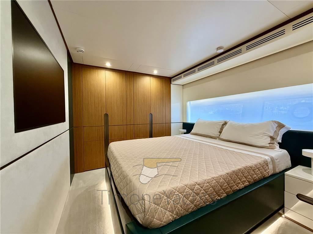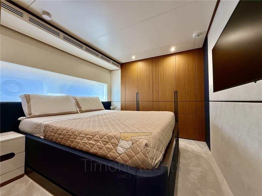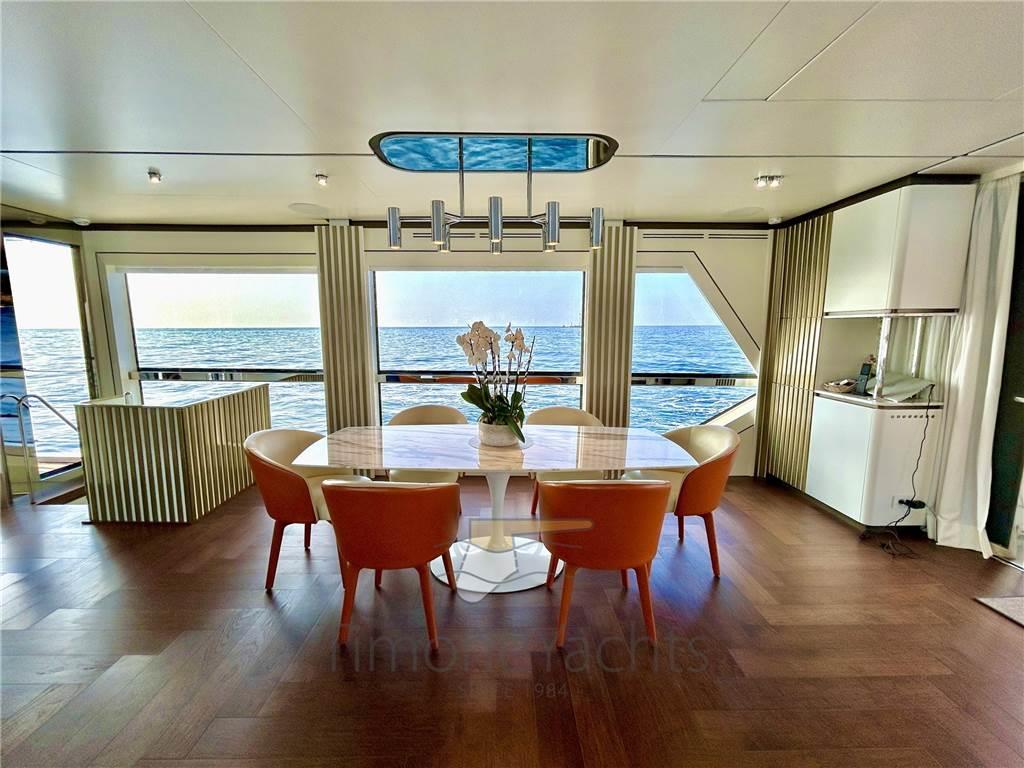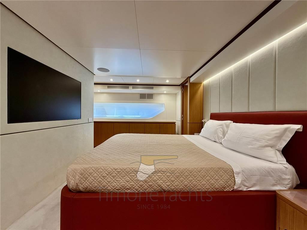 Il salone principale è una villa sull'acqua, con finestre così grandi che sarà difficile distinguere l'interno/esterno. L'enorme salone ha due nicchie a centro nave, che favoriranno l'imbarco dei vostri ospiti con stile se ormeggiati "all' inglese". Al main deck c'è chiaramente l'appartamento master dove, ebbene sì, c'è una porta a vetri apribile elettricamente che porta sul ponte esterno anteriore. Per non considerare l'ampio corridoio d'ingresso con cui inizia l'area padronale.