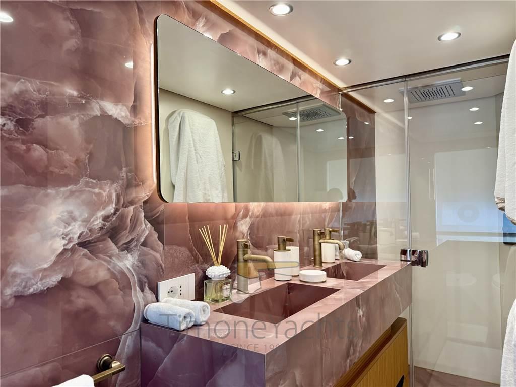 Ognuna delle restanti 3 cabine ospiti, al ponte inferiore, potrebbe facilmente fungere da seconda cabina armatoriale, sia per lo spazio che per la pregio dei materiali.