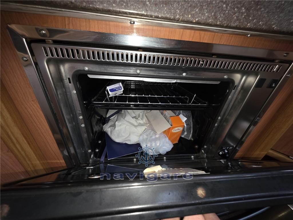 Aria condizionata, Boiler, Copripozzetto, Cucina (MAI USATA), Cuscineria completa, Cuscineria di poppa, Cuscineria di prua, Cuscineria fly, Cuscineria Pozzetto, Forno (MAI USATO), 2 Frigorifero interno, Indicatore del serbatoio del carburante, Indicatore del Serbatoio dell’Acqua, Indicatore della pressione dell’olio nel motore, Indicatore della temperatura del motore, Pavimento interno in legno, Prese interne 12v, Prese interne 220v, Radio AM/FM, Stereo, Tendalino, WC marino elettrico