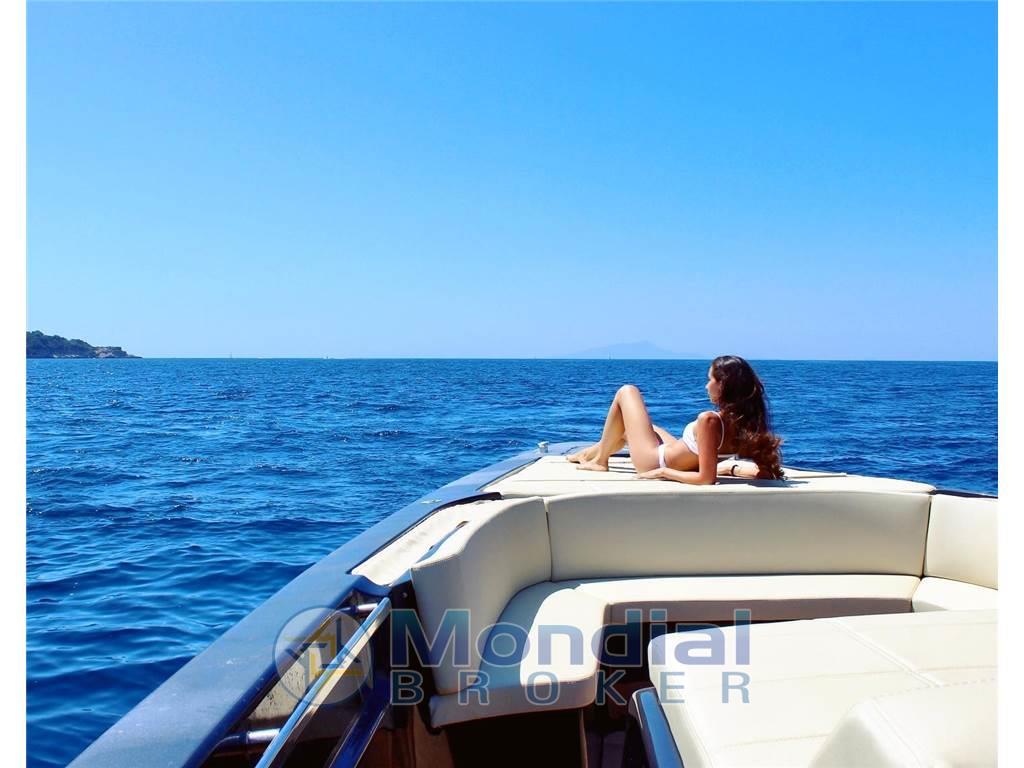Allarme motore, Allarme sentina, Alternatore, Apertura Vano Motore Elettrica, Camminamenti laterali in teak, Colorazione speciale, Doccia esterna, Elica di prua - bow thruster, Flap idraulici, Impianto antincendio, Indicatori Flaps, Luci di cortesia, Luci subacquee, Parabordi, Piattaforma, Pompa di sentina automatica, Pompa di sentina elettrica, Pozzetto Teak, Presa 220V banchina, Presa acqua banchina, Scaletta da bagno, Tavolo pozzetto, T-Top, Winch tonneggio di prua.