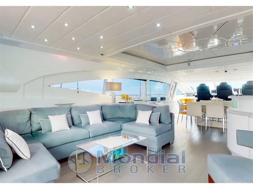 Le finiture, curate in ogni dettaglio, richiamano l’atmosfera calda e raffinata dei migliori yacht italiani di tradizione Mangusta: tonalità neutre, tessuti pregiati, moquette nuova e illuminazione LED a intensità regolabile.