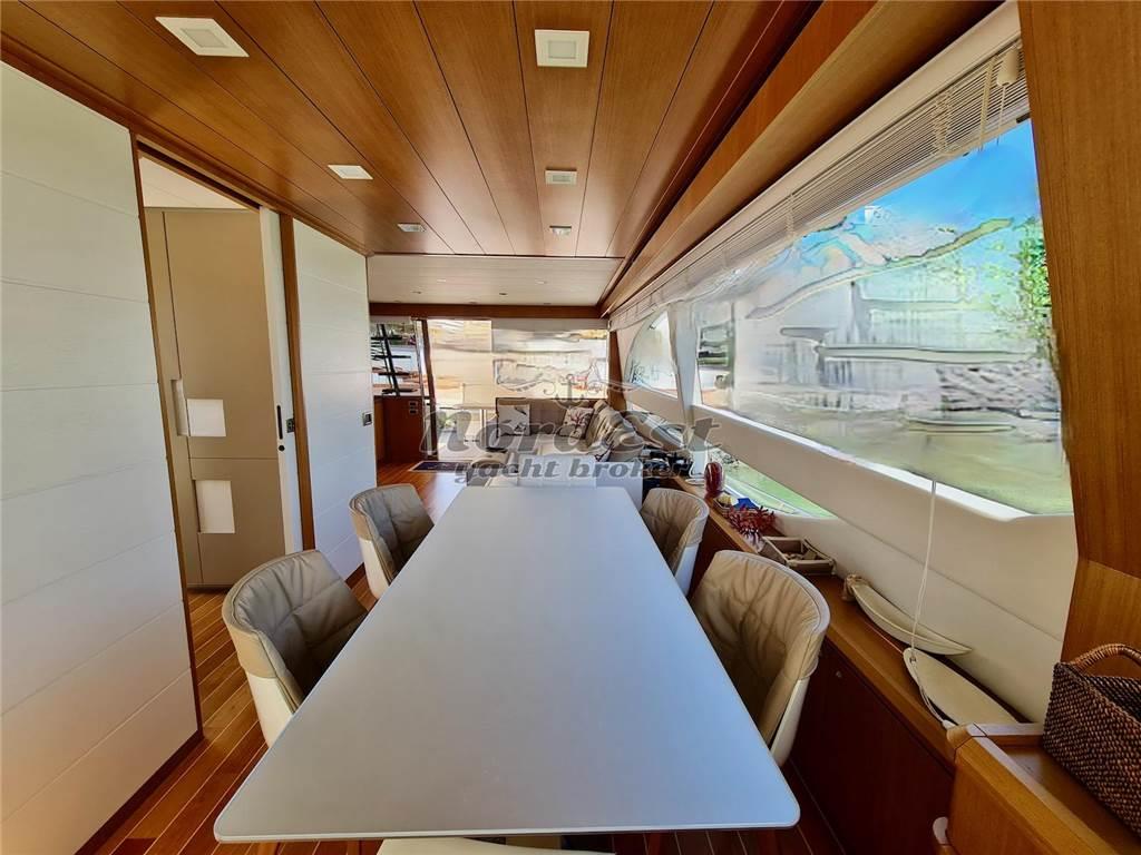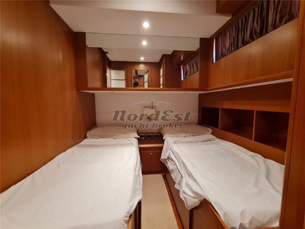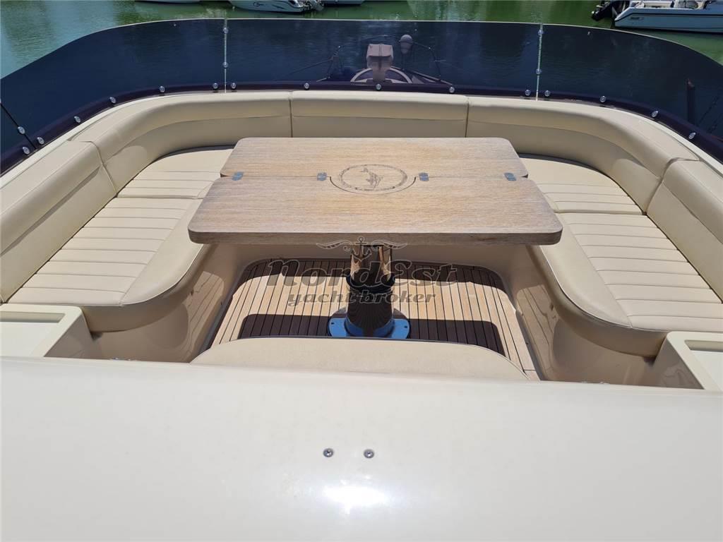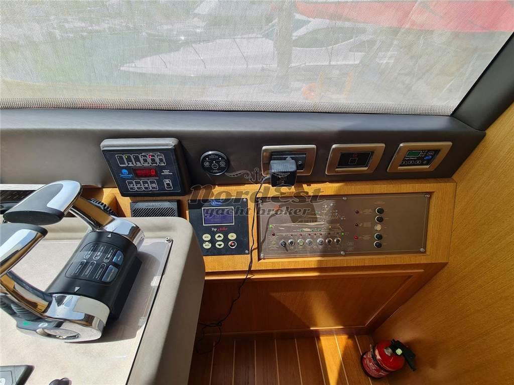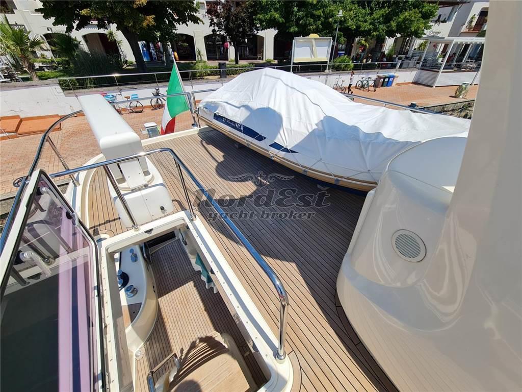 Condizioni impeccabili pari al nuovo. Fiancate riverniciate 2024. Tante migliorie apportate dall'armatore, esperto, molto attento e scrupoloso. Terza stazione in pozzetto. Doppio generatore, tender sul flying bridge e garage tender in plancetta di poppa. Sempre rimessata al coperto per circa 8 mesi. Tre cabine e tre servizi, cabina equipaggio con letti a castello. Dissalatore Idromar. Cuscineria esterna nuova 2023.