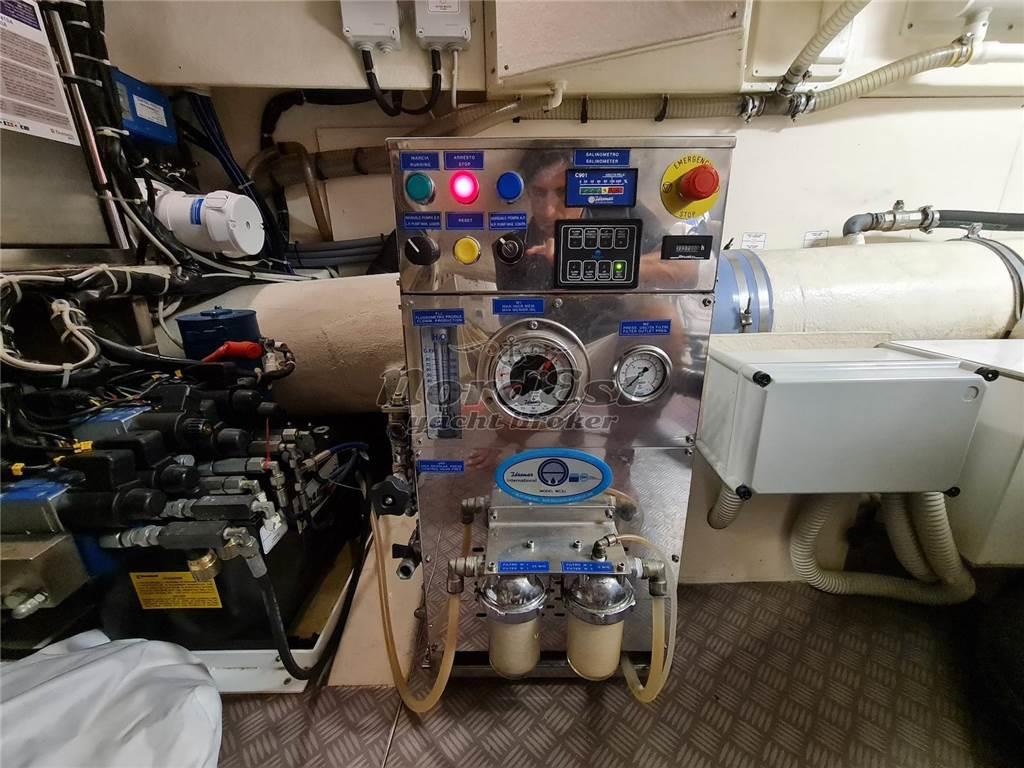 Impeccable like new condition. Many improvements made by the experienced, very careful and thorough owner. Third station in cockpit. Double generator, tender on flying bridge and garage tender in aft platform. Always stored under cover for about 8 months. Three cabins and three bathrooms, crew cabin with bunk beds. Idromar watermaker.