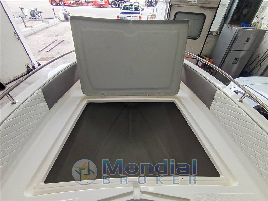 La barca è equipaggiata con console Raymarine a copertura totale, funzionante sia come cartografia che come fishfinder, impianto stereo, timoneria idraulica e tendalino a quattro archi nuovo. È presente un verricello elettrico con circa sessanta metri di catena e ancora da 6 kg, oltre a pompa di sentina e autoclave. Il motore ha 108 ore di moto, si presenta in ottime condizioni con elica nuova, alimentato da batteria da 100 Ah appena sostituita.