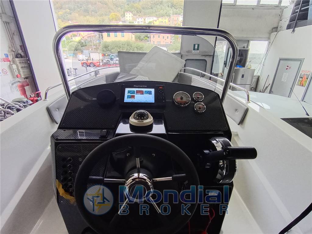 Imbarcazione open di 6,70 metri, anno 2021, in condizioni pressoché nuove. La carena è autosvuotante e perfetta, il gelcoat originale è lucido e senza difetti, il rivestimento non presenta alcun vizio. Il cruscotto in carbonio nero è impeccabile e la cuscineria, conservata in cellula chiusa, è asciutta e priva di strappi.
