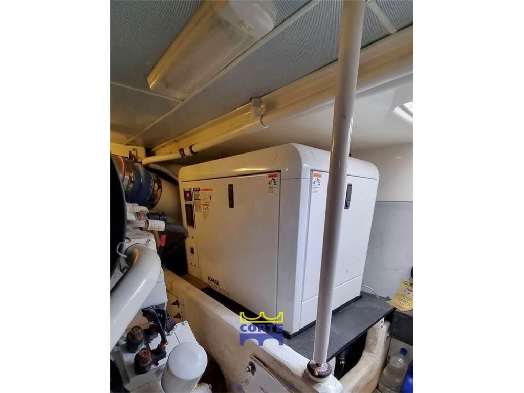 Allarme motore, Allarme sentina, Ancora, Autoclave, Autogonfiabile, 6 Batterie, Bussola, 3 Caricabatterie, Comando motori elettronico, Contametri catena, Contamiglia, Display (comando motori VOLVO PENTA), Doccia esterna, Ecoscandaglio (Simrad), Elica di prua - bow thruster, Faro orientabile, Flap elettrici, Flap idraulici, GPS, Lavaggio catena, Log, Luci di cortesia, Passerella, Piattaforma, Pilota automatico (Geonav), Pompa di sentina automatica, Porta ingresso, Radar (Simrad), Raddrizzatore, Radio VHF (Geonav), Salpa Ancore Elettrico, Scaletta da bagno, Tavolo pozzetto, Winch Elettrico