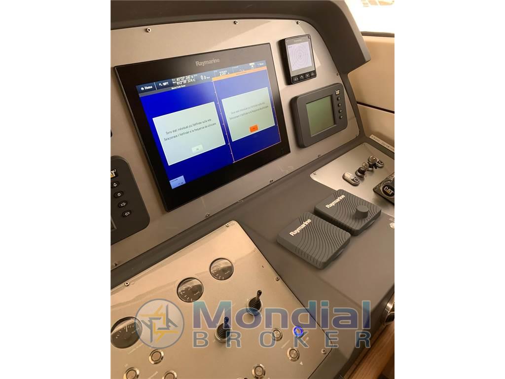 Allarme motore, Ancora, Autoclave, Batterie, Caricabatterie, 2 Doccia esterna (Una a prua e una poppa), Doppia timoneria, Ecoscandaglio, Elica di prua - bow thruster, Flap idraulici, 2 GPS (Strumentazione Raymarine hybrid touch), Passerella (Idraulica lato destro, a scomparsa), Piattaforma, Pompa di sentina automatica, Pompa di sentina elettrica, Porta laterale (Elettrica), Pozzetto Teak, Presa 220V banchina, Radar, 2 Radio VHF, Rollbar, Salpa Ancore Elettrico, Scaletta da bagno, Tavolo pozzetto, , Tender (3,3 con yamaha 15hp), 2 Winch tonneggio di poppa, Winch tonneggio di prua