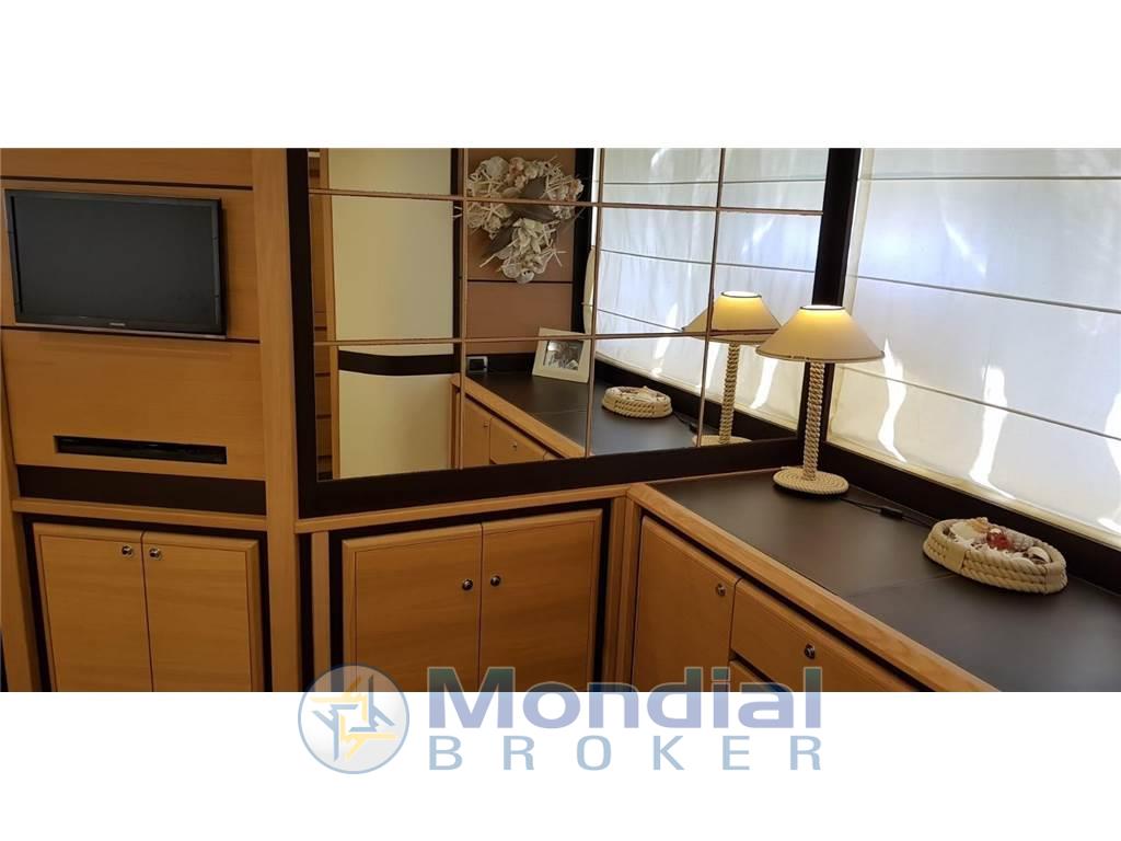 Aria condizionata, Boiler, Congelatore, Cucina, Cuscineria completa, Dotazioni di sicurezza entro 12 miglia (del 2024), Forno, Frigorifero esterno, 2 Frigorifero interno, Impianto TV, Lavasciuga, Lavastoviglie, Microonde, Piastra in vetroceramica, Tendalino, 5 TV, 4 WC marino elettrico, tende elettriche, teak interno , porta laterale elettrica. porta vivande con chiusura elettrica. Tenda prendisole sul prendisole di prua.