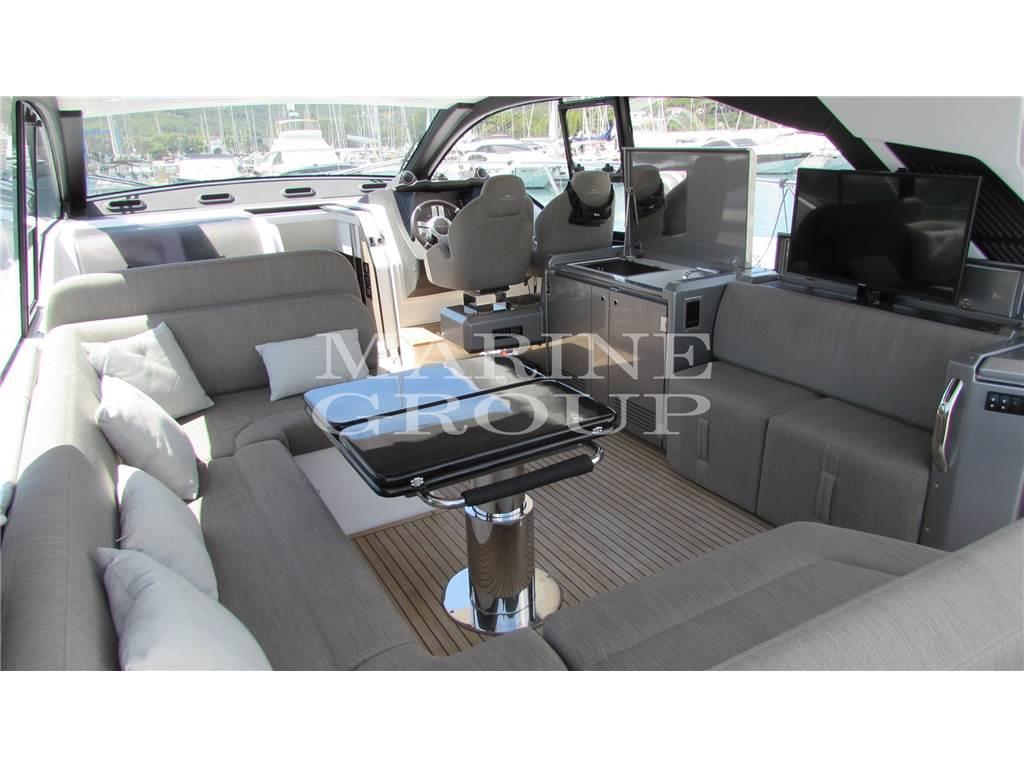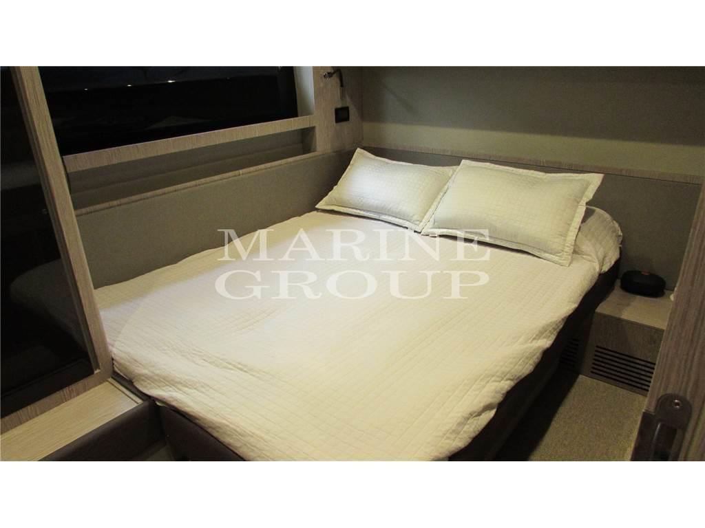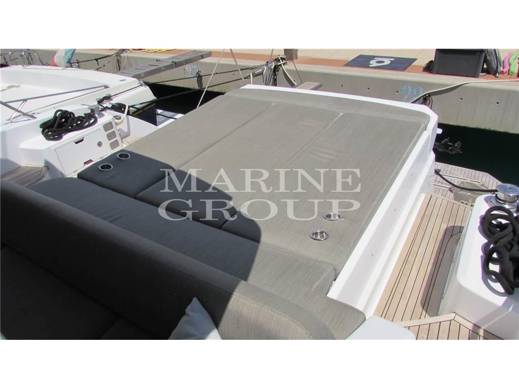 Ambiente arioso e spazioso che vede perfettamente frontestanti l'ampia dinette e la cucina completamente attrezzata; Cabina armatoriale matrimoniale a prua incorniciata da grandi vetrate ed innondata di luce naturale con bagno en suite completo di box doccia separato; cabina VIP a centro barca con letti separati che possono all'occorrenza trasformarsi in un letto queen-size; generosa terza cabina con letti a castello; secondo bagno con box doccia separato.