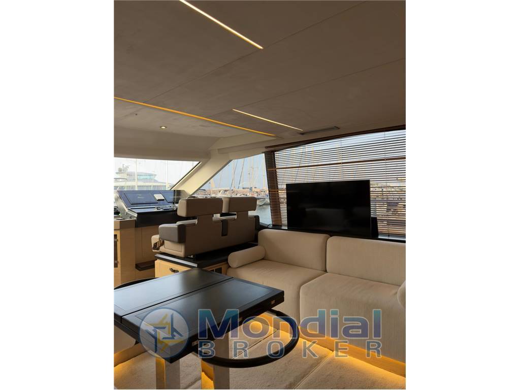 Full optional: plancetta idraulica (tender lift), extra joystick per manovra dal pozzetto, Ancora digitale Volvo Penta, Stabilizzatore Seakeeper 6, Antenna TV Satellitare, impianto fotovoltaico, impianto audio system BOSE, bimini a prua con pali in carbonio.