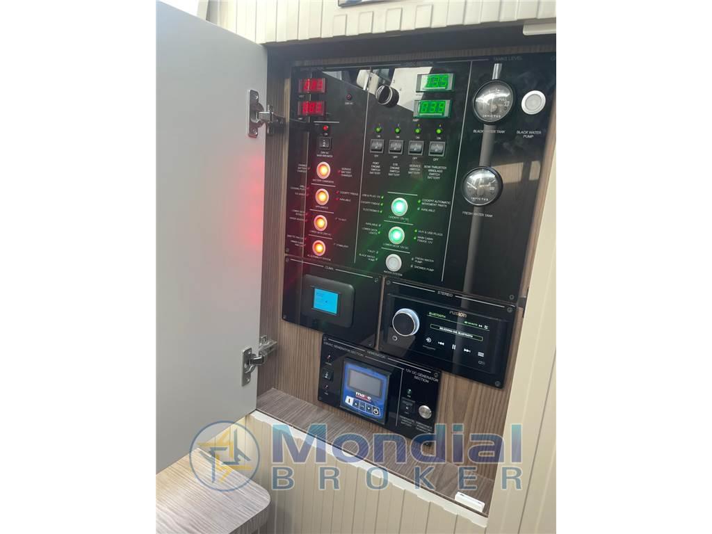 Acqua Calda, Altoparlanti, Boiler, Clima reversibile, Cucina (esterna), Cuscineria di prua, Cuscineria Pozzetto, Dimmer per Luci (luci Rgb esterne), Frigorifero esterno, Frigorifero interno, Indicatore del serbatoio del carburante, Indicatore del Serbatoio dell’Acqua, Indicatore del Serbatoio delle Acque Reflue, Pavimento interno in legno, Piastra in vetroceramica, Prese interne 12v, Prese interne 220v, Serbatoio Acque Nere, Stereo, Telo copriconsolle, Telo coprisedile, Tendalino (poppa con pali carbonio), WC marino elettrico